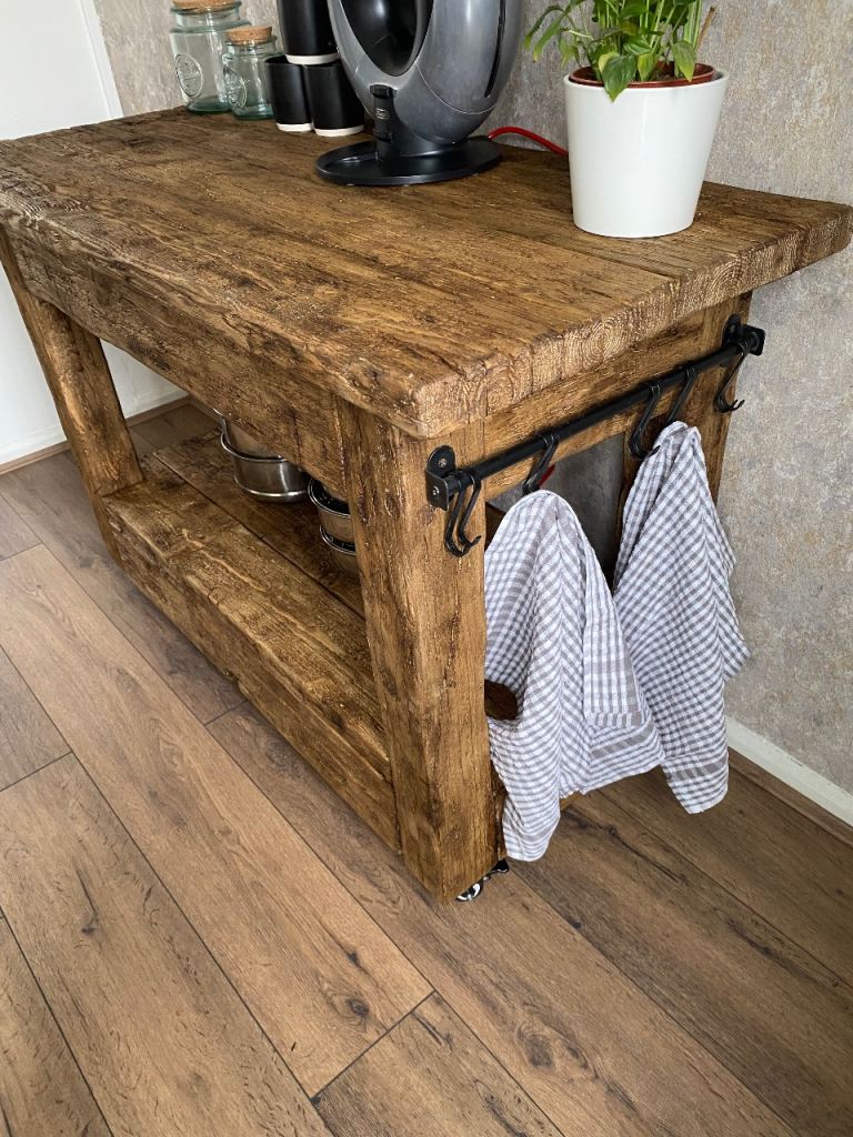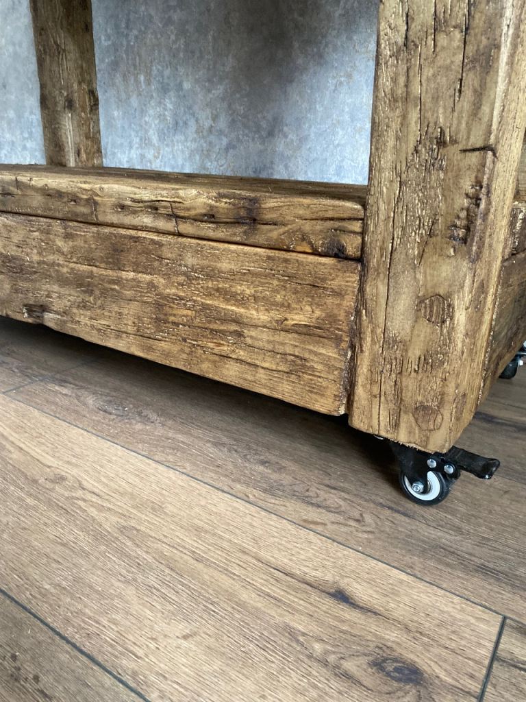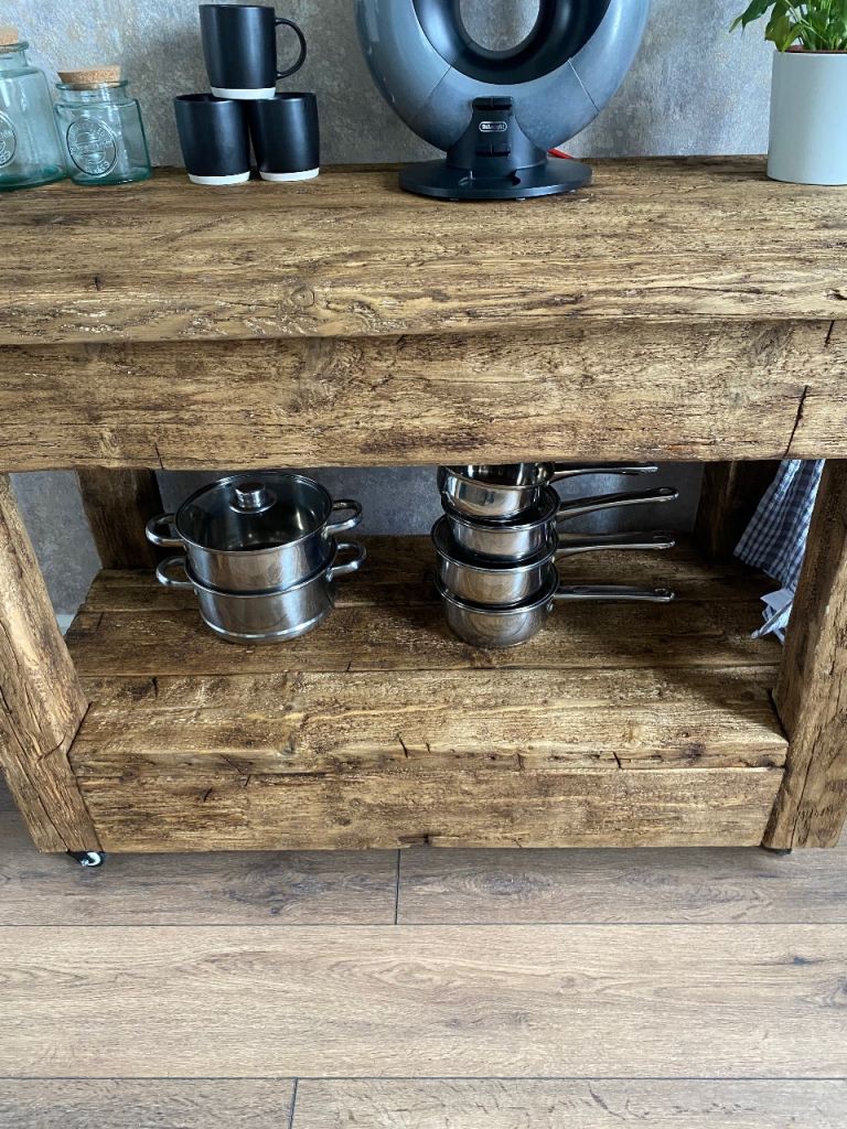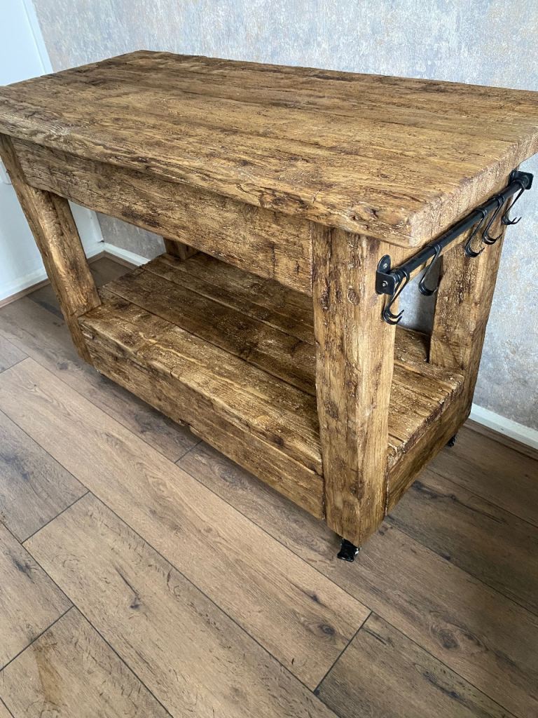 Rustic Reclaimed Wood Kitchen Island / Console Table with Wheels