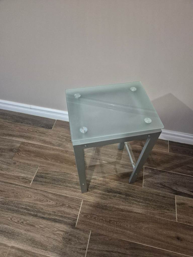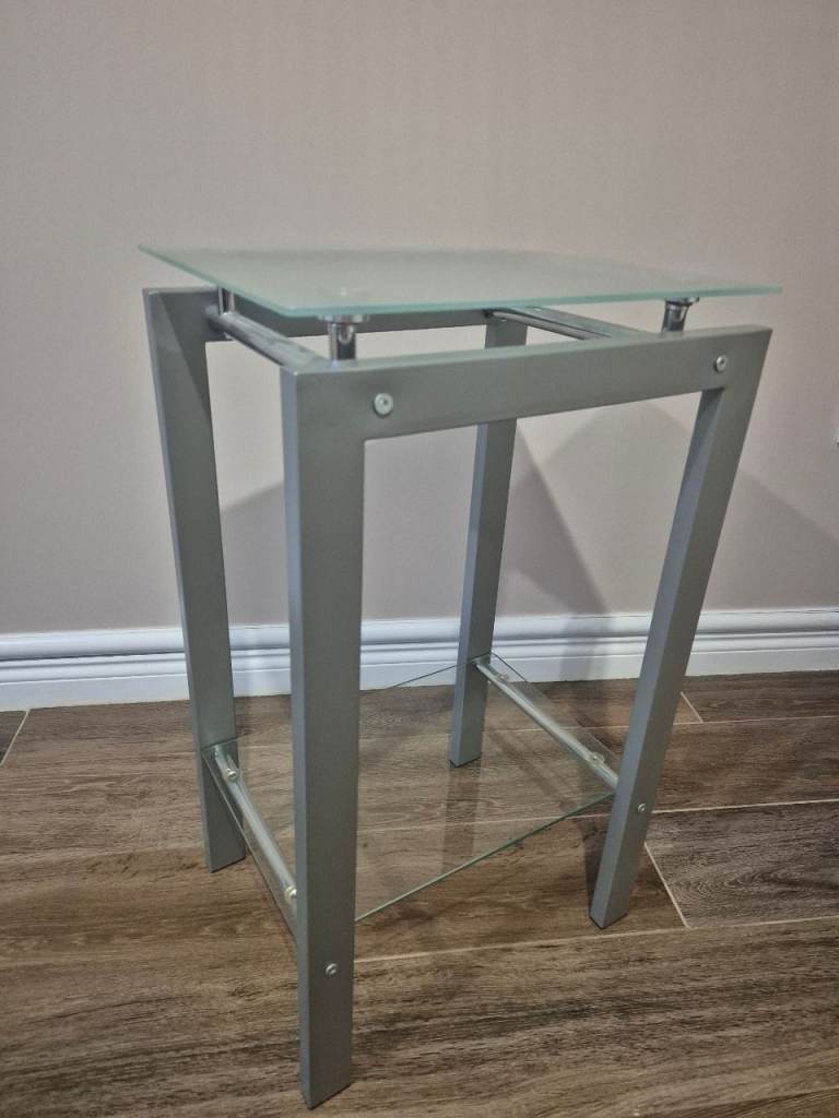 Gorgeous metal & glass side table. 38 x 30cm. 67cm high. The glass shelf is 18cm off the ground. Collection only.