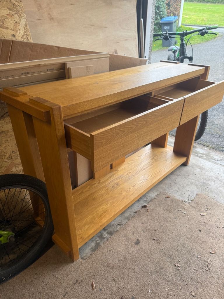 Posting for 5+ yearsSolid Oak Console Table with Two Drawers – Good Condition