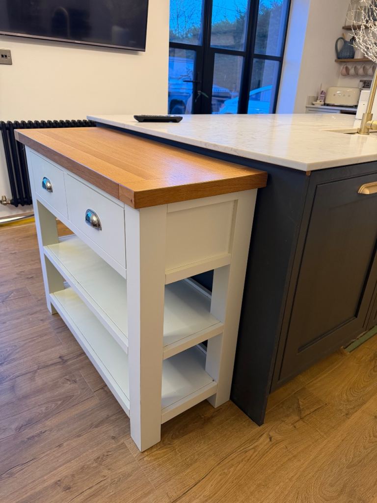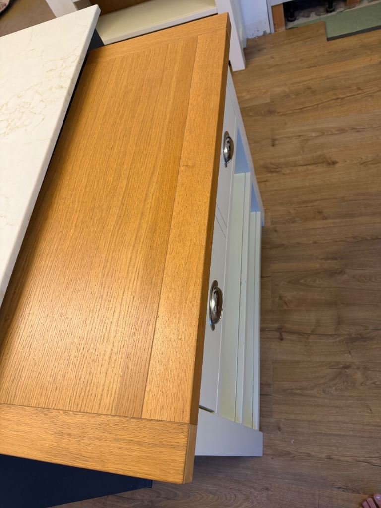 Stunning piece of furniture, used for additional storage in kitchen - no longer required. Cream with solid oak top.