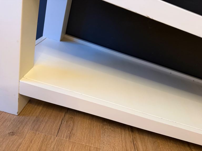 Some cracks in the paint in shelves, tho in use, not noticeable! Signs of use as pictured.
