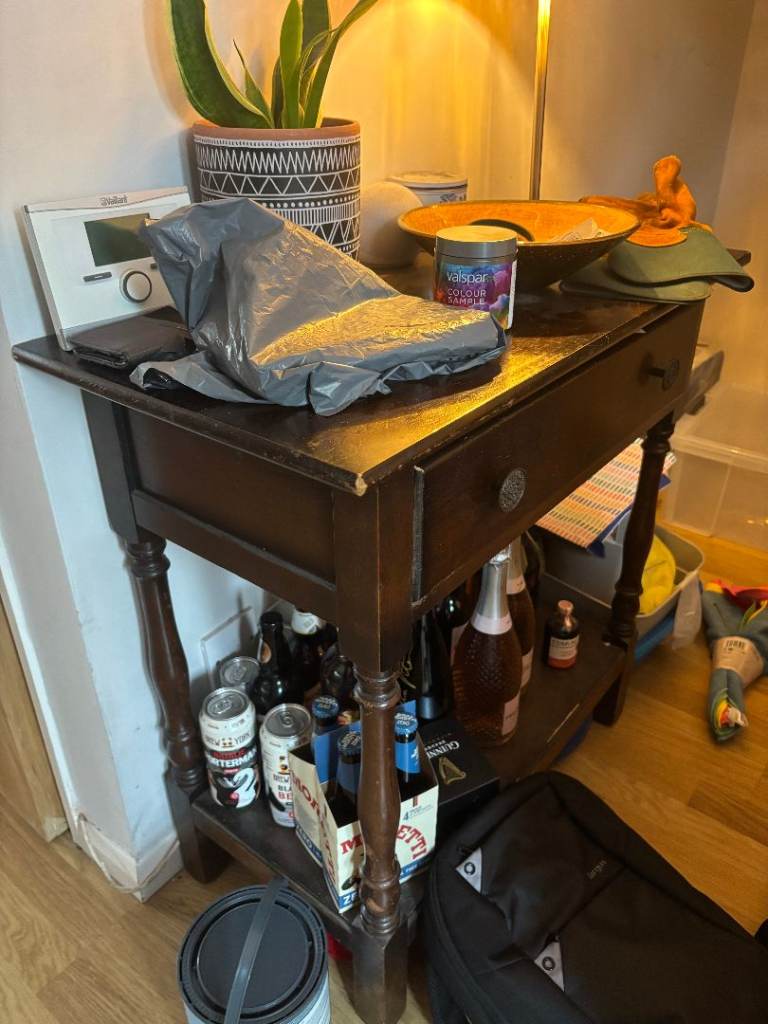Solid oak topped, white/cream console