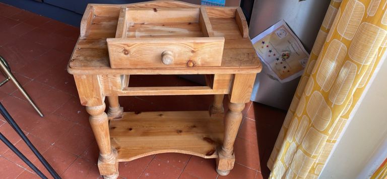 Solid Pine Small Table with Drawer