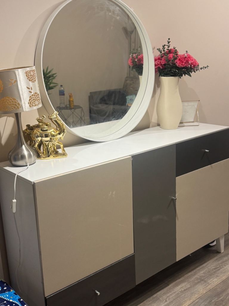 Large table console with large mirror. Both in great condition. I’m selling due to relocation.