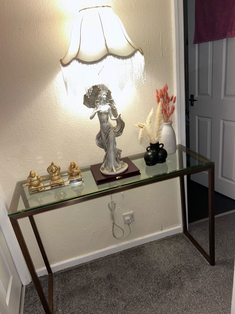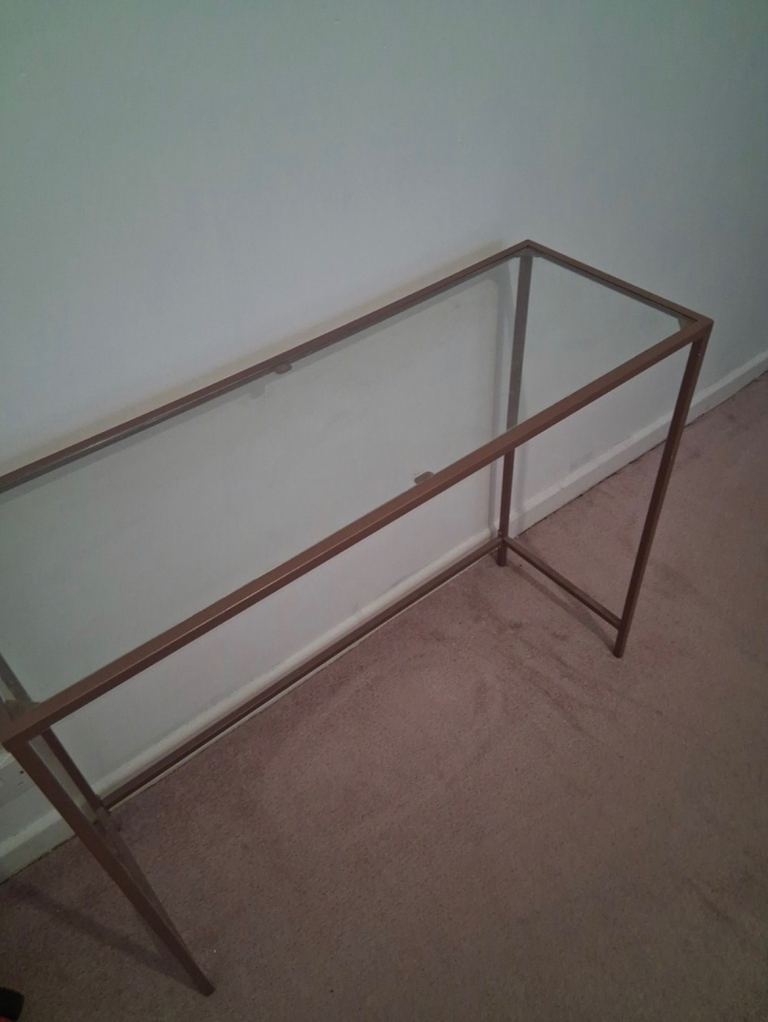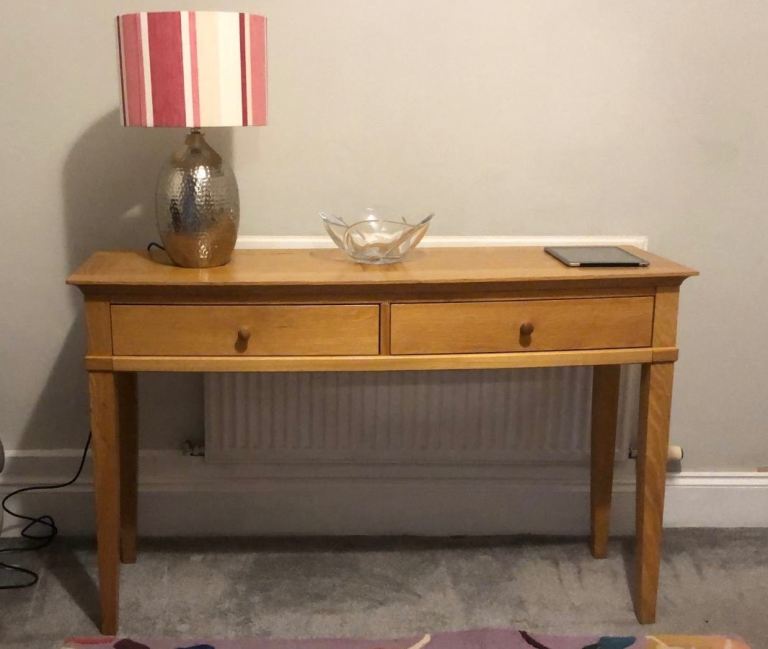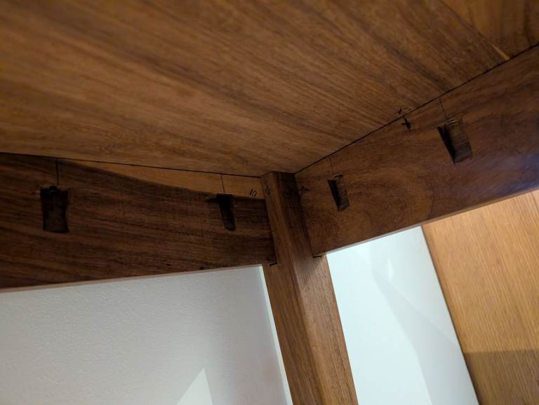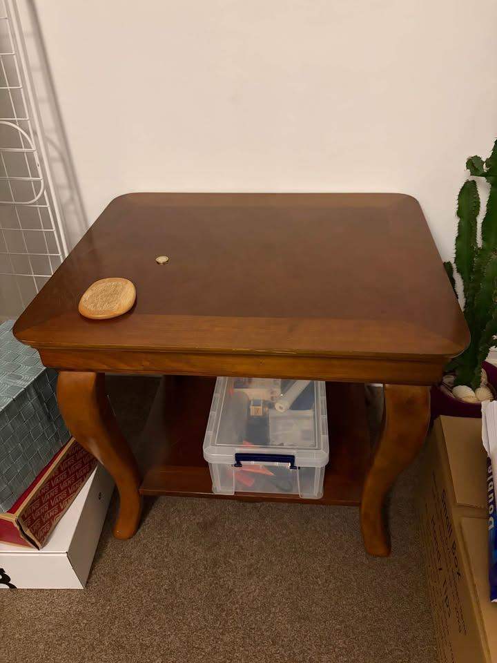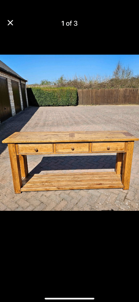 Really pretty solid teak table. it's very plain but sturdy. Its gathered some marks to the finish that are pictured. It would benefit from being redone, but I haven't had time.
