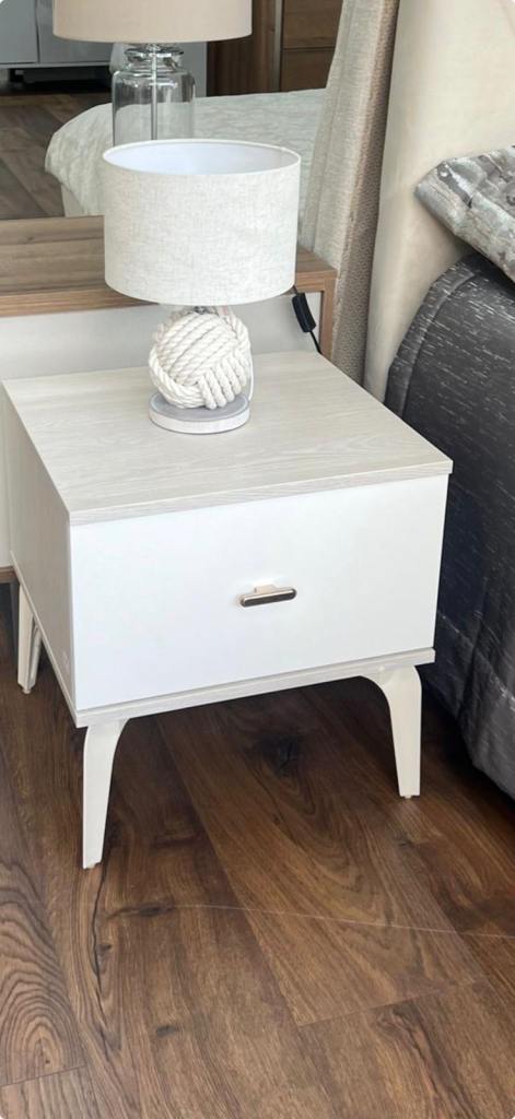 White wooden tv bench or side table for sale.