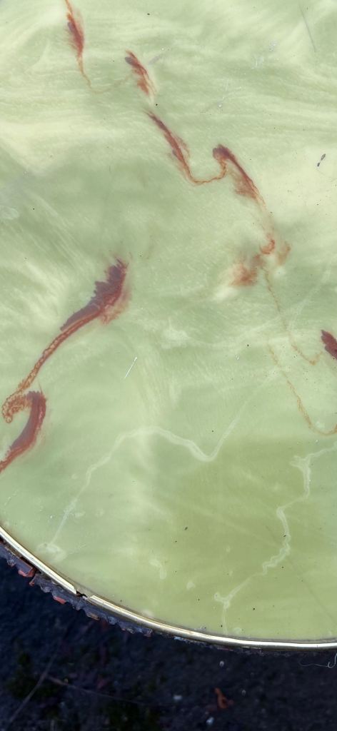 A vintage and unusual side table. In good condition. Would probably benefit from a clean with the right products. A couple of little imperfections but for a table of its age it’s still in great condition