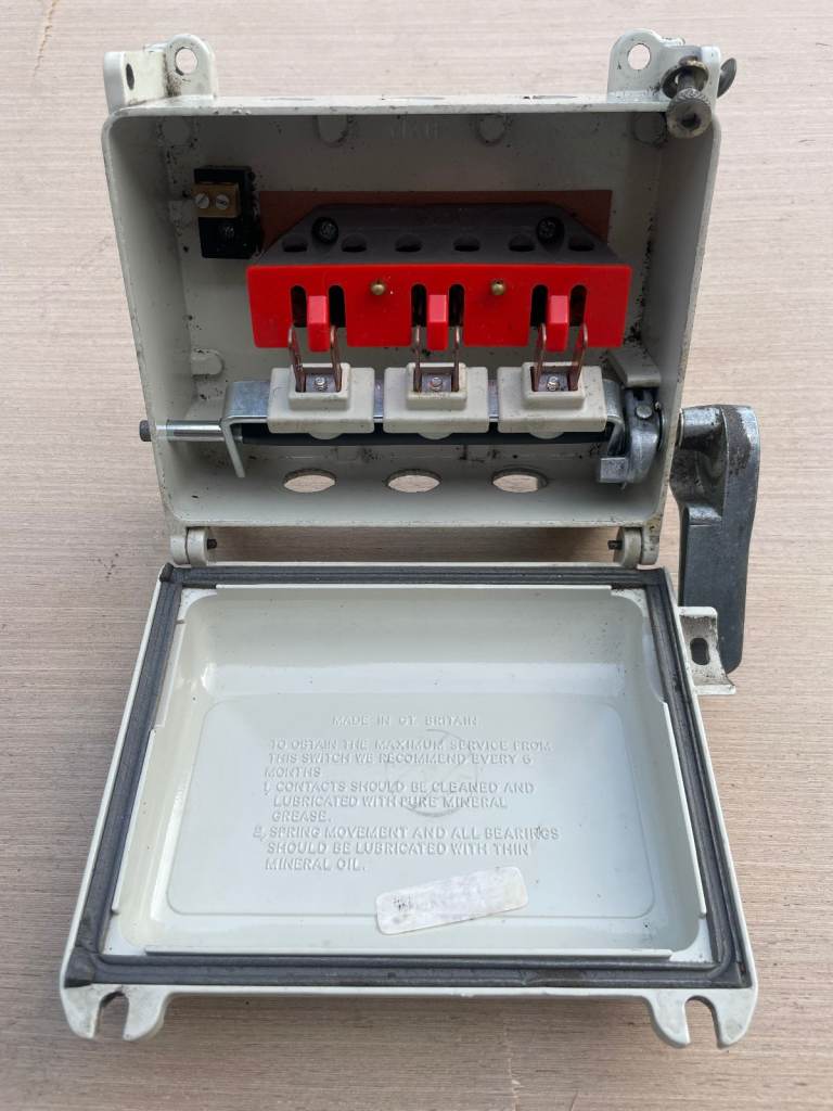 3-Phase isolator rated at 20A, 500V. In very good condition, looks to be unused.