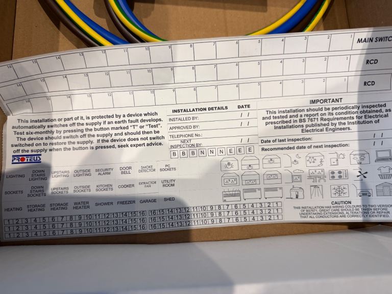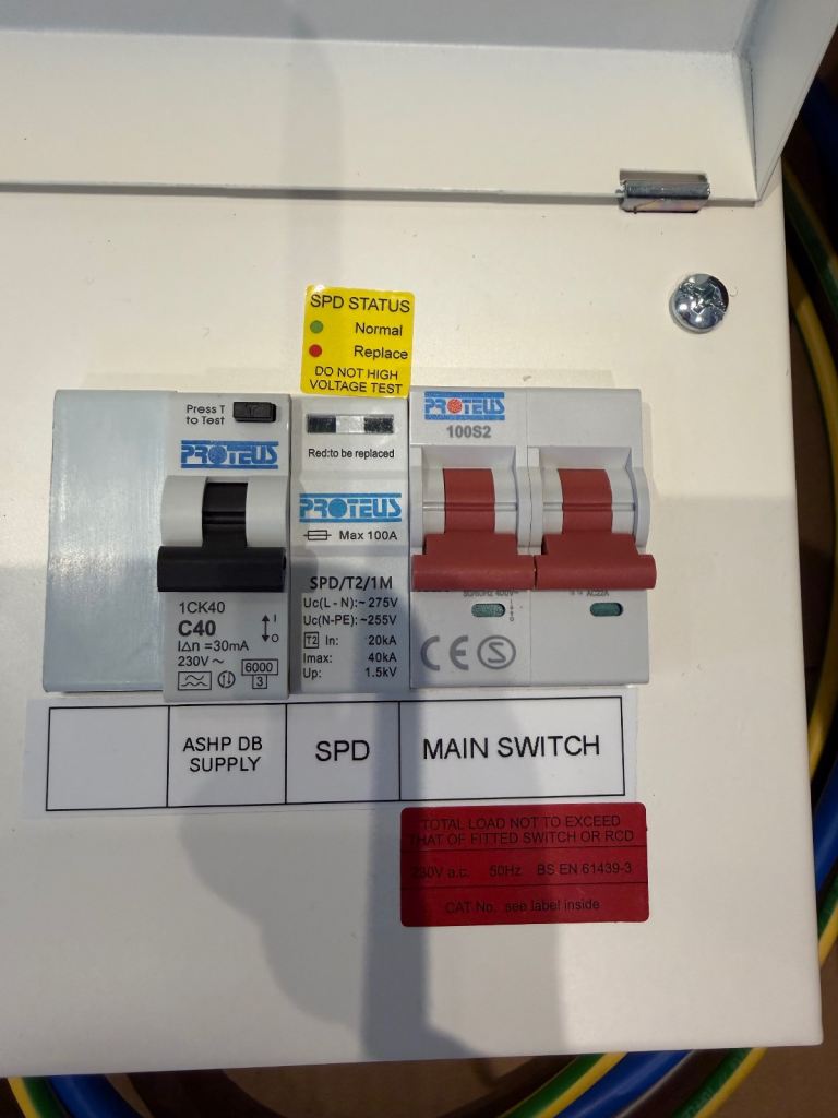 100A consumer unit, Proteus EV, with surge protection device and 40A RCBO.