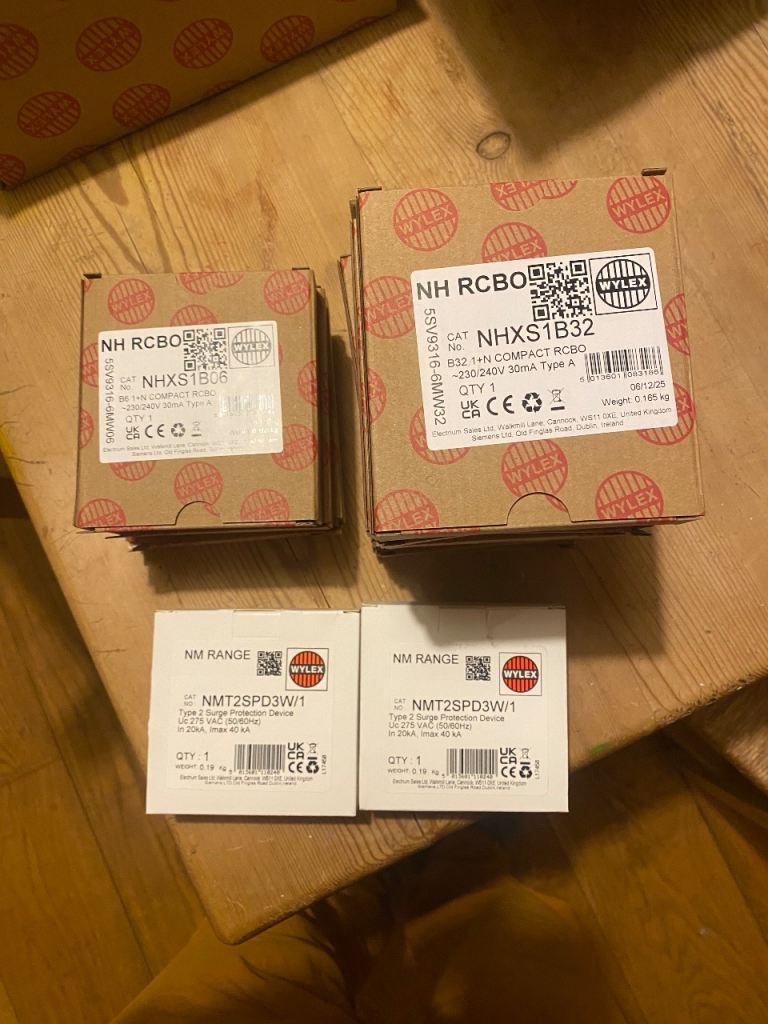 Brand new Wylex board with RCBOS and surge protectors.
