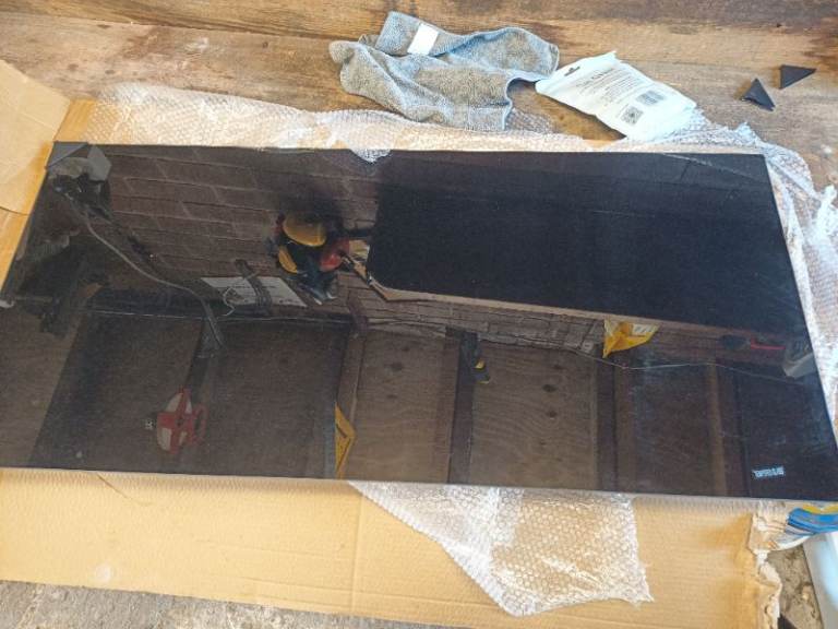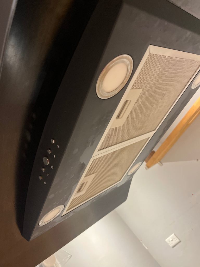 Black, smoked glass hood, recirculating carbon filters, no vent needed