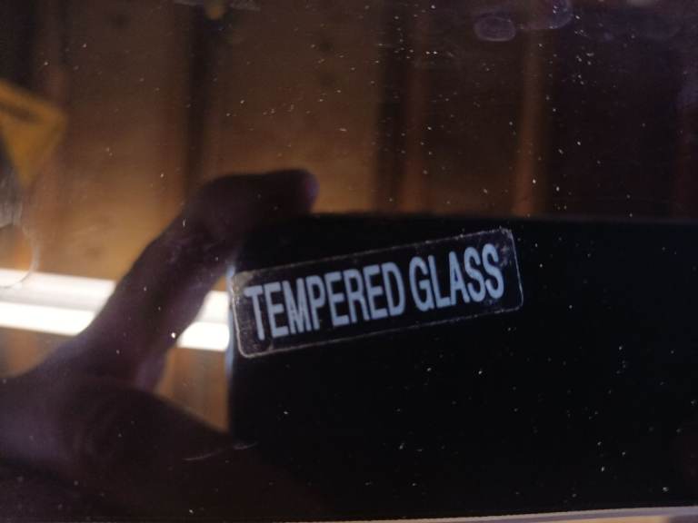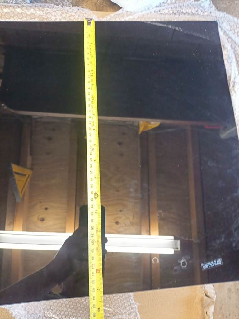 17,5 inch by 37,5i inch black tempered glass splash back, new, never used