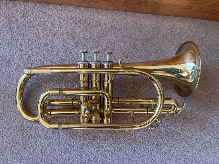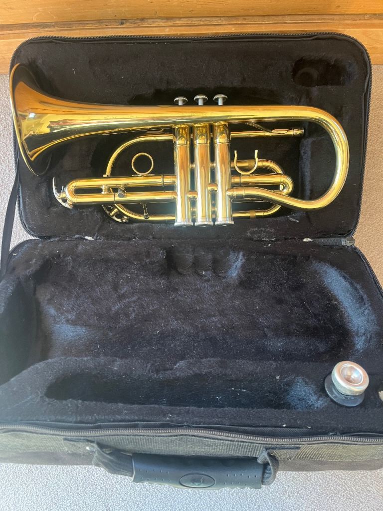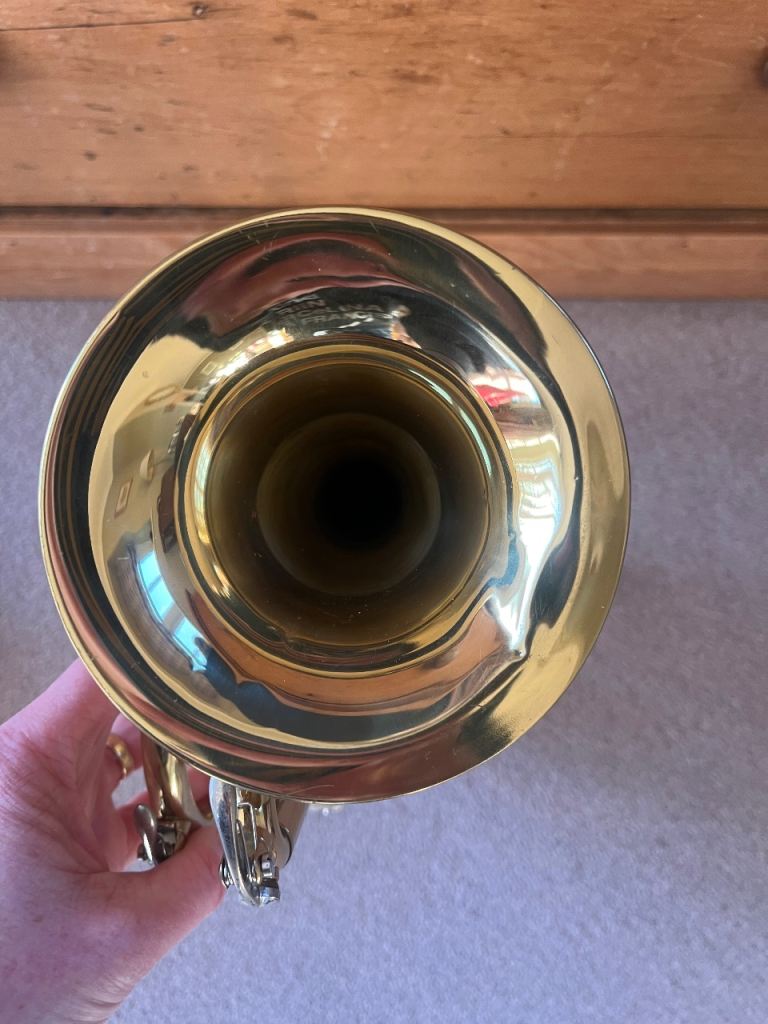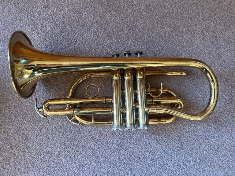 “Legende” cornet, pre owned, in good mechanical and cosmetic condition other than a small dent but doesn’t affect play and can easily be smoothed out for approx £20