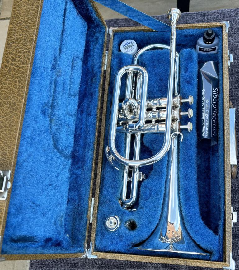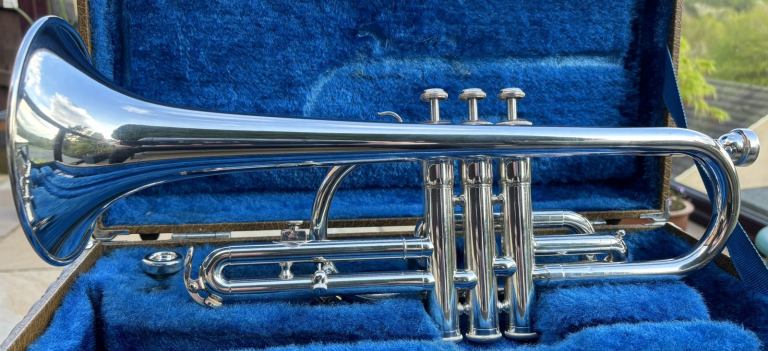 In excellent condition for age. There is a very minor, barely noticeable mark on the tuning slide from a dent repair (see last photo). Comes with case, valve oil, slide grease and polishing cloth. New valve springs have been fitted and both waterkey corks replaced. Great student/beginners cornet. Serious enquiries appreciated - Cash/Collection only.