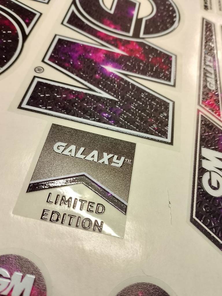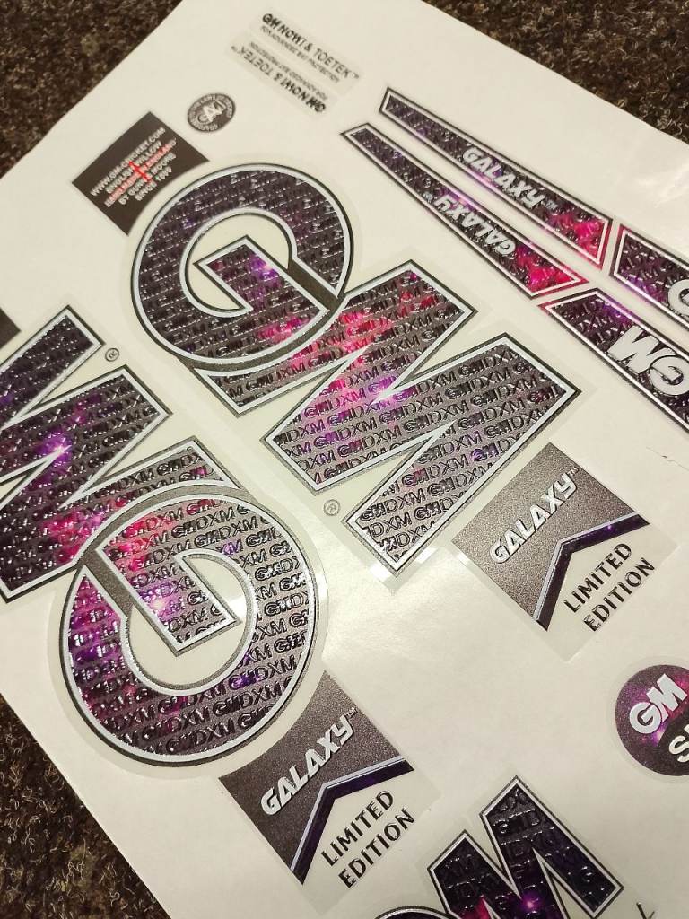 Set of GM Galaxy Limited Edition cricket bat stickers.