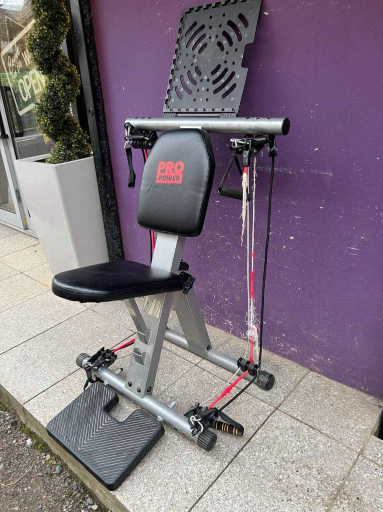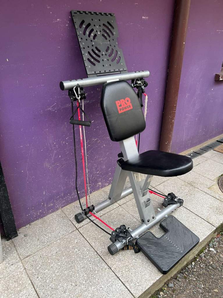 Resistance band trainer in good condition, previously used and professionally reconditioned for immediate reuse, featuring;