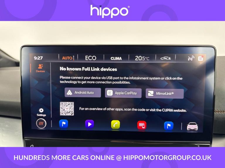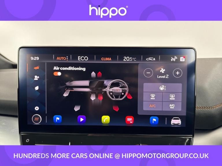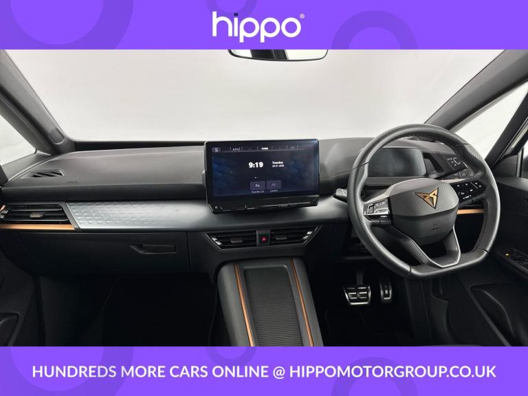 Presenting this CUPRA Born 58kWh V1 5dr Electric Auto, with 46,342 miles on the clock. Featuring efficient electric performance and practicality, this hatchback is well equipped for modern driving. Enjoy comfort and convenience with Climatronic dual-zone air conditioning and a heated, leather-wrapped multifunction steering wheel. Connectivity is seamless thanks to Bluetooth integration—supported by a 12-inch central infotainment display and 5.3-inch digital cockpit, with DAB and AM/FM radio for your entertainment. Enhance your driving experience with the inclusion of 18-inch Cyclone alloy wheels, which add style and road presence, while park distance control at both the front and rear assists with convenient manoeuvring in tight spaces. The cabin is designed for usability, with intuitive controls and ample visibility. Hippo Approved is known for a wide selection of vehicles suited for various needs and budgets. Each car undergoes a rigorous 130-point quality and safety inspection at our state-of-the-art £3 million preparation centre, ensuring your peace of mind. Additionally, we offer tailored finance packages for personal and business use, making it easy to acquire your ideal car.