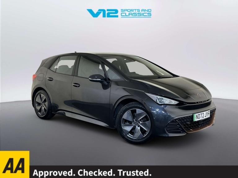 Finished in a sophisticated Grey hue, the Cupra Born exudes style and sophistication at every turn. Its powerful 204 ps electric motor delivers a thrilling driving experience, while the spacious interior ensures comfort for every journey. Don't miss your chance to own this exceptional Cupra Born. Visit us today and experience the future of driving for yourself.Competitive finance is also available.We are open 7 days a week and have more than 1500 cars to choose from.All our Euro 4 Petrol and Euro 6 Diesel vehicles meet the ULEZ standard.Vehicle specification can be found below. From time to time vehicles have manufacturer recalls notified. Please read our recall policy on our website for further information. Please be advised that the advertised electric vehicle (EV) listings may experience battery degradation over time, resulting in reduced performance and range compared to the original specifications. Factors such as usage patterns, environmental conditions, and charging practices can contribute to this degradation. While we strive to provide accurate information, the actual battery health and performance of each EV may vary. Customers are encouraged to conduct thorough research and consider the potential impact of battery degradation before making a purchase decision. We recommend consulting with a qualified technician or conducting a battery health inspection for further assessment. This vehicle comes with an AVILOO Battery Health Certificate - the global standard for EV battery testing. Full independent analysis confirms excellent battery condition with detailed State of Health assessment, cell-level checks, and accurate range data. Certificate included with purchase for your complete peace of mind and future resale value.Disclaimer: While every effort is made to ensure the accuracy of vehicle specifications, features, and descriptions, errors and omissions may occur. Specifications and equipment may vary and may not be present on the vehicle at the point of sale. Buyers are advised to confirm all details with the seller before completing a purchase.