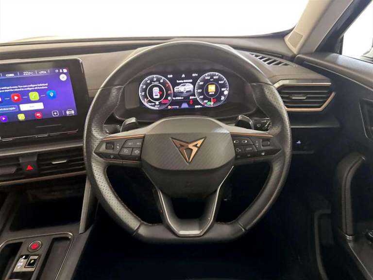 This 2022 CUPRA Formentor TSI V2 is a superb example, having had only one owner since new. This Euro 6 compliant model boasts a powerful 2.0 litre petrol engine paired with a four wheel drive drivetrain, offering a dynamic driving experience. Its V2 trim level comes equipped with a host of desirable features, including striking LED headlights with automatic activation and convenient coming leaving home functions. Experience effortless driving with the heated leather multi-function steering wheel, complete with gear shift paddles for manual control. Parking is made simple thanks to the park assist system, which includes sensors at both the front and rear. Inside, occupants can enjoy personalised comfort with the three zone climate control, featuring a dedicated control panel for the rear passengers. This CUPRA Formentor stands out with its impressive 0-62mph acceleration time of just 7.0 seconds, demonstrating its performance capabilities compared to similar vehicles.For peace of mind this vehicle has only had 1 registered owner and has completed a multi point AA inspection.Competitive finance is also available.We are open 7 days a week and have more than 1500 cars to choose from.All our Euro 4 Petrol and Euro 6 Diesel vehicles meet the ULEZ standard.Vehicle specification can be found below. From time to time vehicles have manufacturer recalls notified. Please read our recall policy on our website for further information. 12V Socket, Navigation System, USB Type C x4 - x2 Front and x2 Rear, Wireless Phone Charger, Digital Cockpit and Configurable Dashboard, Driver Alert System, Driving Profile Selection, Forward Collision Warning with Automatic Braking, Park Assist - including Front and Rear Sensors, Predictive Adaptive Cruise Control with Speed Limiter, Rear View Camera, Tyre Pressure Monitoring System, 19in Alloy Wheels - Exclusive Machined Sport - Matt Black and Silver, Breakdown Kit, Electric Window - Front, Electrically Adjustable - Folding and Heated Door Mirrors with Memory Function, Electronic Locking Differential with Dynamic Traction Support, Gloss Black Roof Rails and Window Surrounds, Locking Wheel Bolts, Rear Diffuser with Black Simulated Exhaust Pipes, Tinted Rear Windows, Daytime Running Lights with Automatic Headlight Control and Coming-Leaving Home Lights, Dynamic Headlight Range Control, Front Fog Lights with Cornering Function, LED Headlight, LED Taillights with Dynamic Indicator, 60-40 Rear Seats with