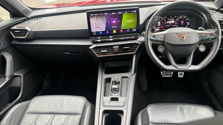 Hold on tight—this is no ordinary family SUV. This 2023 Cupra Formentor Estate 2.0 TSI 310 VZ2 5dr DSG 4Drive in jaw-dropping Desire Red is a full-throttle performance machine wrapped in a beautifully sculpted, practical body.At its heart lies a ferocious 2.0-litre TSI turbocharged engine producing a mighty 310PS, launching you from 0–62mph in seriously rapid fashion. Paired with CUPRA’s lightning-fast DSG automatic gearbox and intelligent 4Drive all-wheel-drive system, traction is immense and acceleration is relentless. Yet it’s not just about straight-line speed—the Formentor’s adaptive chassis control, progressive steering and beautifully balanced setup mean it corners with precision and confidence. Select your drive mode and it transforms from refined cruiser to sharp-edged performance SUV in seconds.The VZ2 specification ensures the drama continues inside. You’re greeted by a fully digital cockpit and a large central touchscreen with navigation and wireless Apple CarPlay and Android Auto. Heated sports seats, a heated steering wheel and tri-zone climate control deliver comfort to match the performance. Striking copper accents, ambient lighting and premium materials create a cabin that feels every bit as special as it looks. Matrix LED headlights, a rear-view camera, front and rear parking sensors, adaptive cruise control and a comprehensive suite of advanced driver assistance systems complete this impressive package.Despite its performance credentials, the Formentor remains wonderfully practical. Five doors, generous rear space and a versatile boot make it perfectly suited to family life or weekend adventures.When you buy from Vertu SEAT/CUPRA, you gain total confidence. Every vehicle is meticulously inspected and prepared by manufacturer-trained technicians, supported by transparent pricing and expert guidance from a team passionate about the brand.Fast, focused and utterly distinctive, this Desire Red Formentor VZ2 is performance motoring with everyday usability—done the CUPRA way..Climate Control, Metallic Paint, Cruise Control, Satellite Navigation, Leather Seats, Heated Seats, DAB Radio, Bluetooth, Parking Sensors, Low Mileage, Full Service History, USB, Manufacturer Approved, Electric Seats, Diamond Cut Alloy Wheels, Adaptive cruise, Keyless Entry-Push Button Start, Apple-Android Play, Rear Camera, Electric Opening Tailgate, Auto Lights, Electric Folding Mirrors, Lane Keeping Assist, Pre Crash Prevention& Rain Sensors, Electric front/rear windows, Tinted rear windows, Rain sensing wipers, Rear wash/wipe, Electronic parking brake, Hill hold control, Front and rear disc brakes, Brake control system - ESC and brake booster, ABS, Sports suspension with front shock absoption, Wireless apple carplay, Voice control system, Wired Android Auto, Speed sensitive power steering, Park assist (inc front/rear parking sensors), Driver alert system, Dynamic chassis control with driving profile selection (Comfort, Sport, CUPRA, Individual)