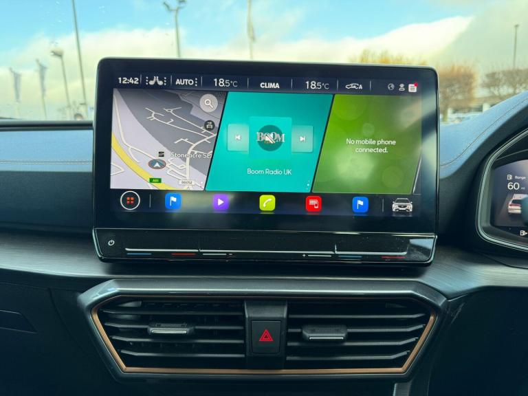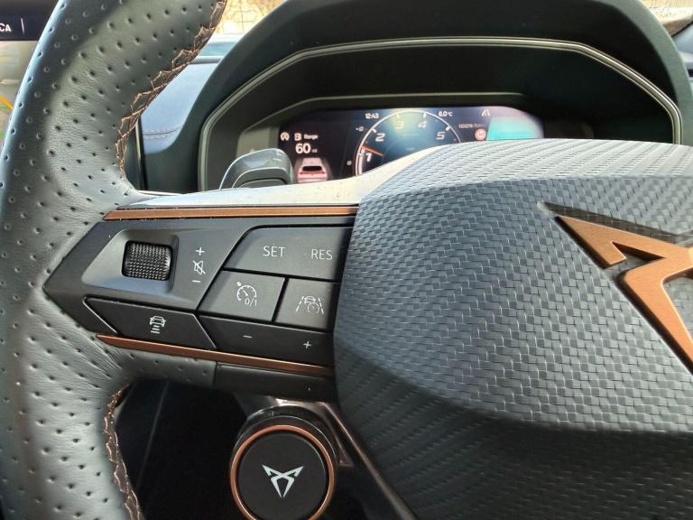 This 2023 CUPRA Formentor TSI VZ3 boasts exceptionally low mileage for its age, having covered just 17,626 miles. This striking example of the VZ3 trim features a powerful 2.0 litre petrol engine paired with a four wheel drive drivetrain, ensuring confident handling in all conditions. As a Euro 6 compliant vehicle, it meets modern emissions standards. Notable features include Kessy keyless entry and start, a rear view camera for enhanced parking assistance, and Park Assist with front and rear sensors. The heated Supersports multifunction leather steering wheel, complete with satellite buttons and gearshift paddles, adds a touch of premium comfort and control.The performance of this CUPRA Formentor is truly impressive, highlighted by its rapid 0-62mph acceleration in just 4.9 seconds. This quick acceleration demonstrates how this vehicle offers a more dynamic driving experience compared to many others in its class. Further enhancing your journeys is the Predictive Adaptive Cruise Control with Speed Limiter, which intelligently maintains your set speed and distance from the vehicle ahead, making longer drives more relaxed and efficient.