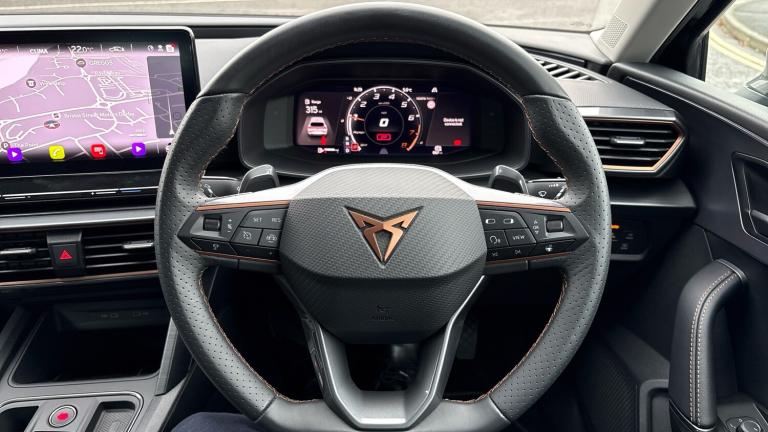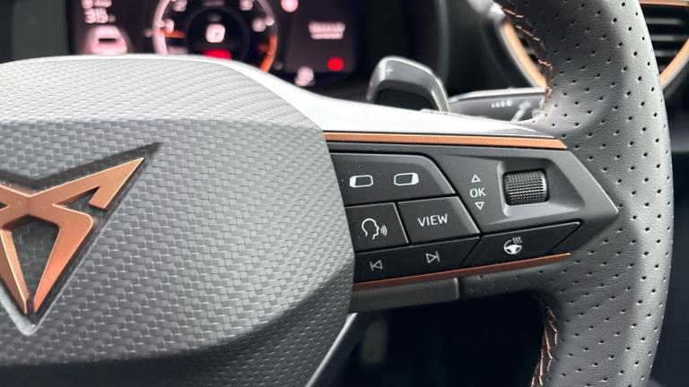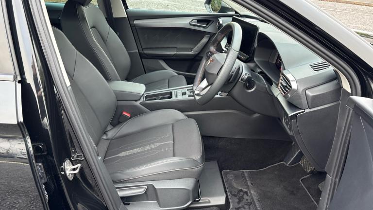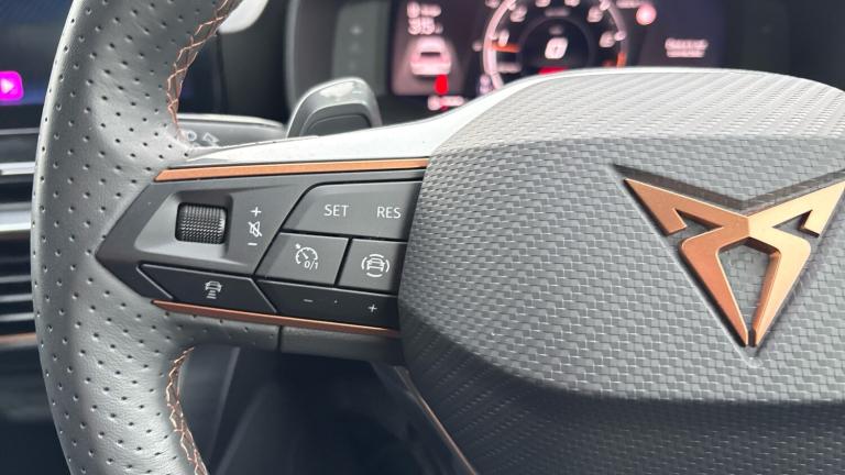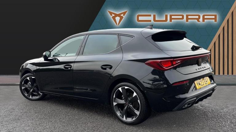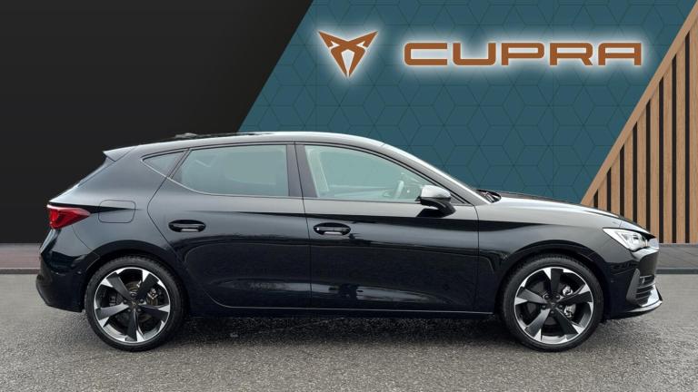There are hot hatches… and then there’s the CUPRA Leon 1.5 eTSI V1 DSG, a car that takes everyday driving and injects it with genuine excitement. Finished in sleek Midnight Black, this 2023 model looks every inch the modern performance hatch, combining sharp design, clever mild-hybrid technology and effortless DSG smoothness into one irresistibly sporty package.At its heart sits the 1.5 eTSI mild-hybrid petrol engine, delivering punchy performance with impressive efficiency. The electric assistance helps sharpen throttle response and reduce fuel consumption, while the DSG automatic gearbox swaps gears seamlessly, making city driving stress-free and open-road blasts seriously satisfying. It’s quick when you want it, calm when you don’t, and always engaging.Specification on the V1 trim is strong and thoughtfully curated. The aggressive exterior styling features CUPRA’s signature copper detailing, sculpted bodywork and striking alloy wheels that perfectly complement the deep Midnight Black paint. Step inside and you’re met with a driver-focused cabin that feels properly special. Sports seats hold you snugly in place, the digital cockpit delivers crystal-clear driving data, and the large central touchscreen puts navigation, media and smartphone connectivity right at your fingertips. Dual-zone climate control, ambient lighting and a suite of advanced driver assistance systems ensure comfort and confidence on every journey.Despite its sporty credentials, the CUPRA Leon remains beautifully practical. The hatchback layout offers a generous boot and flexible rear seating, making it ideal for daily commuting, weekends away or family duties, all without sacrificing its performance edge.Choosing to buy from Vertu SEAT/CUPRA adds complete peace of mind. Every car is meticulously prepared and inspected by manufacturer-trained technicians, ensuring it meets the highest standards. You’ll benefit from flexible finance options, tailored part-exchange solutions and the reassurance of exceptional customer care from a team that truly understands the CUPRA brand..Air Conditioning, Climate Control, Metallic Paint, Cruise Control, Satellite Navigation, DAB Radio, Bluetooth, Parking Sensors, Stop Start, USB, Manufacturer Approved, Diamond Cut Alloy Wheels, Apple-Android Play, Lane Keeping Assist, Pre Crash Prevention& Rain Sensors, Rear wash/wipe, Electric front/rear windows, Dark tinted rear windows, Rain sensing wipers, ABS, Rear disc brakes, Electronic parking brake, Hill hold control, Brake control system - ESC and brake booster, Cupra black brake calipers, Sports suspension, E-call, Full link smartphone integration with Mirror Link, wireless Apple CarPlay and wired Google Android Auto, Rear view camera, Lane assist, Park assist (inc front/rear parking sensors), Electro mechanical speed sensitive power steering, Front assist with forward collision warning braking reaction to vehicles, pedestrians and cyclists, CUPRA drive profile selection with (Comfort/Sport/Individual), throttle response and gearshift mode