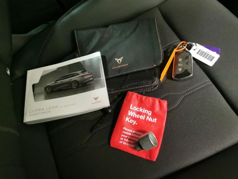 Experience the dynamic Cupra Leon Estate in black, combining sporty performance with everyday practicality. Enjoy the convenience of keyless entry and start, adaptive cruise control, and seamless Apple CarPlay connectivity. With park assist, a reversing camera, and LED headlights, every journey is easy and safe. Paddle shift gears bring a sporty edge to your drive, while climate control ensures comfort on every trip. Explore with confidence thanks to built-in sat nav in this stunning manual petrol estate. 3 services recorded, last serviced on 17/12/2025 at 35,257 miles. MOT to 07/08/2026. Visit our website for service history, online valuation, full vehicle specification plus multiple images. This vehicle is VAT qualifying. Any feature/option specified here is from 3rd party data. We cannot guarantee the accuracy of any specification supplied by a 3rd party. We recommend that you physically check the specification of the vehicle on site prior to purchase. This information does not form part of the buying contract. Terms & Conditions apply. We have over 2,000 cars available from our 10 national branches, check our website to see all our stock. Our Trustpilot rating is 4.4/5 with over 9,000 reviews.