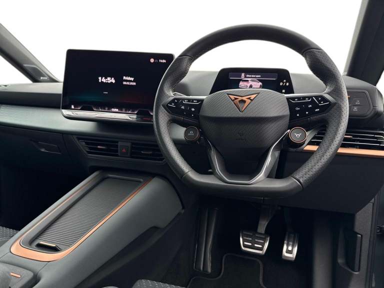 Experience fully electric performance with this striking CUPRA Born VZ 79 kWh 326 Auto, finished in bold Dark Forest Metallic and paired with premium Enceladus Grey CUP Bucket Seats. This highspec VZ model delivers exceptional power, refined style and impressive allelectric range, offering an exciting yet efficient driving experience. The VZ version sits at the top of the Born line-up, bringing a more performancefocused setup with enhanced driving dynamics and sharper responses. As standard, the Born features a sleek and aerodynamic exterior design, LED lighting, distinctive CUPRA detailing and a modern, sporty cabin layout crafted with highquality materials. The CUP Bucket Seats provide superb support, making longer journeys more comfortable while enhancing the cars dynamic, performanceoriented character. Inside, the Born combines technology and usability with a digital cockpit, large infotainment touchscreen, wireless connectivity features, climate control and a clean minimalist layout. Ample interior space, a practical boot and multiple storage solutions make this EV suitable for both daily driving and longer adventures. This vehicle also benefits from CUPRAs 5year / 90,000mile extended warranty, providing extra peace of mind alongside the cars standard safety and driver assistance features. These typically include front and rear parking sensors, autonomous emergency braking, lane keeping assistance, adaptive cruise control, and a full suite of stability and t...