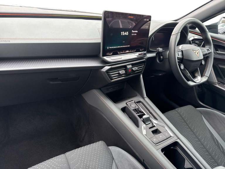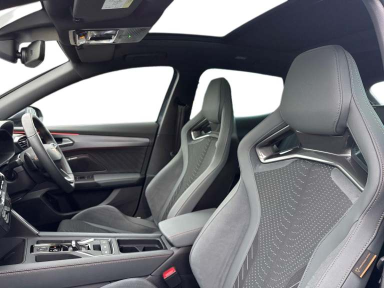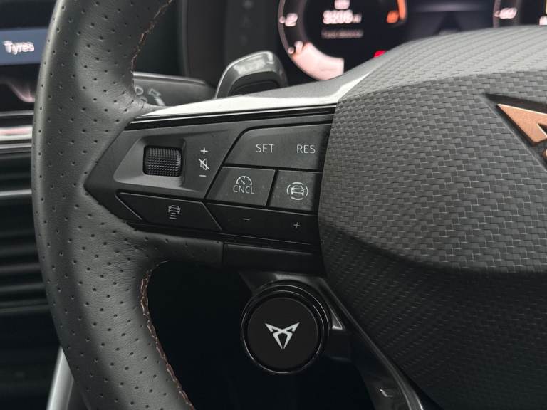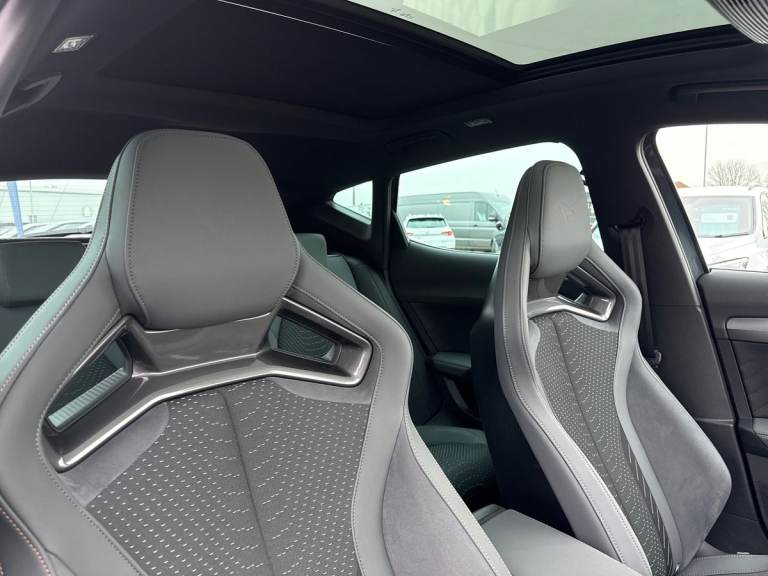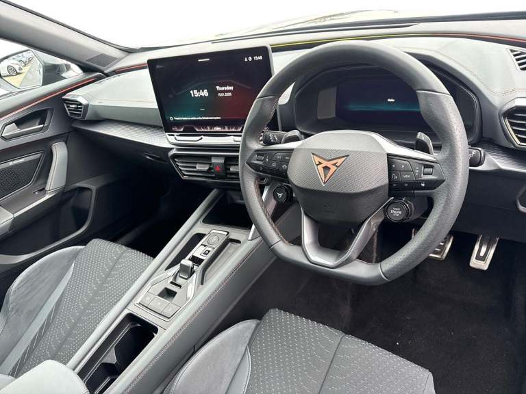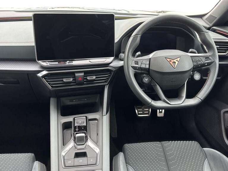 Bold, aggressive and engineered to thrill, this CUPRA Formentor 2.0 TSI 333 VZ3 is a true performance SUV that blends cutting-edge technology with unmistakable CUPRA attitude. Finished in striking Magnetic Tech Grey metallic, its perfectly complemented by the dramatic 19-inch Hailstorm alloy wheels in machined copper, giving the Formentor an imposing, motorsport-inspired presence on the road. Step inside and youre immersed in a driver-focused cockpit trimmed in Turbine textile with Enceladus Grey metallic accents. The front sports seats are electrically adjustable with memory and lumbar support, delivering excellent comfort and support whether cruising or driving enthusiastically. A heated CUPRA supersports steering wheel with shift paddles adds a premium, performance-led feel, while the panoramic sunroof floods the cabin with natural light, enhancing the sense of space and occasion. Under the bonnet, the powerful 333PS 2.0 TSI engine delivers thrilling acceleration and confident performance, supported by a sophisticated chassis and high-performance braking system. Adaptive Cruise Control and intelligent driving systems ensure the Formentor is just as capable on long motorway journeys as it is on winding roads. Technology and safety are at the forefront, thanks to the comprehensive Extreme package. Highlights include Matrix LED headlights, a 360-degree camera system, Intelligent Park Assist, advanced lane and traffic assist systems, rear traffic alert and exit warning, a...