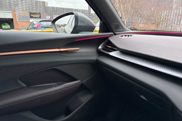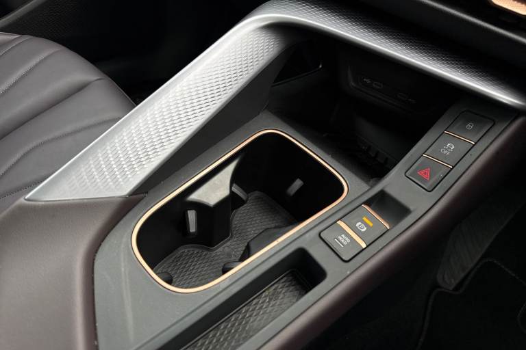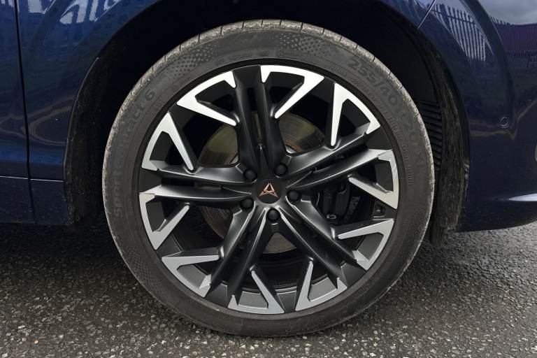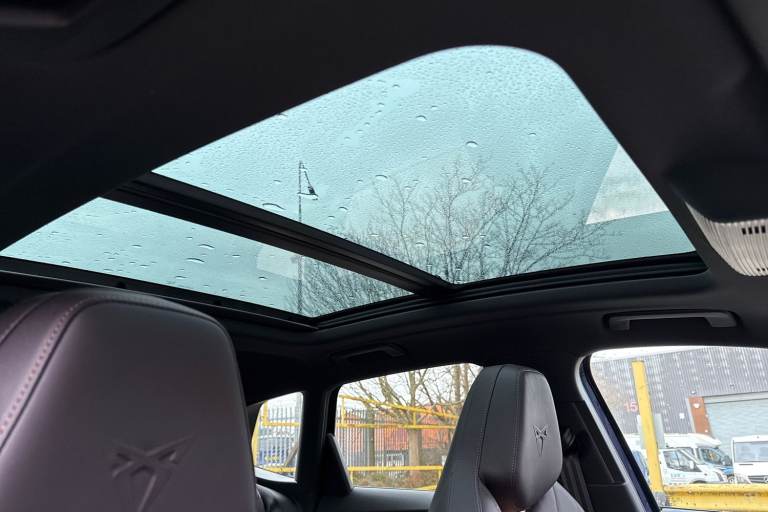 Finished in striking Cosmos Blue, this CUPRA Terramar 2.0 TSI VZ2 DSG 4Drive Euro 6 (s/s) 5-door blends muscular performance with cutting edge design and technology. Powered by a responsive 2.0-litre TSI engine paired with a smooth DSG automatic gearbox and intelligent 4Drive all-wheel drive, it delivers confident performance in all conditions. The exterior is enhanced by exclusive 20 inch Hadron machined alloy wheels with performance tyres, black roof rails and decorative trims, dark tinted rear glass, and distinctive CUPRA 3D rear lights with illuminated logo and dynamic indicators. Inside, the cabin feels premium and sporty, featuring a 10.25 inch digital cockpit with configurable dashboard, head up display, chrome interior detailing, CUPRA sport pedals, smart wraparound ambient lighting, and a heated leather wrapped multifunction sports steering wheel with Tiptronic. Comfort is elevated with heated front seats, a panoramic sunroof, electric tailgate with virtual pedal, keyless advanced entry and start, wireless phone charging, and electrically adjustable, folding and heated mirrors with memory. Technology and safety are at the forefront with adaptive cruise control including follow to stop, advanced lane assist with traffic jam and emergency support, front assist with autonomous braking, intelligent park assist with route memory, top view 360 degree camera system, front and rear parking sensors, high beam assist, rain sensing wipers, and start-stop with regenerative braki...