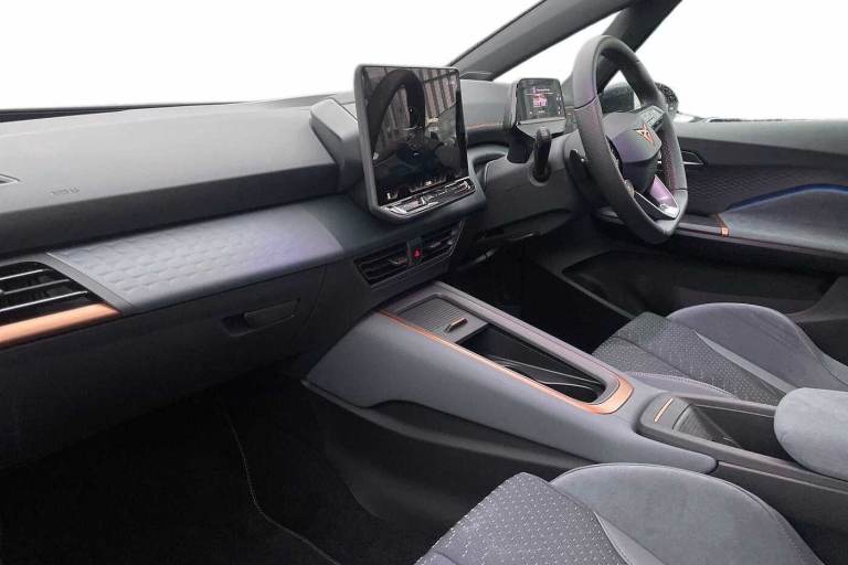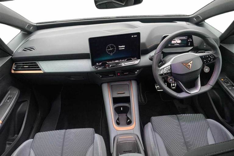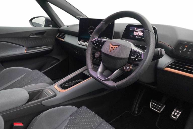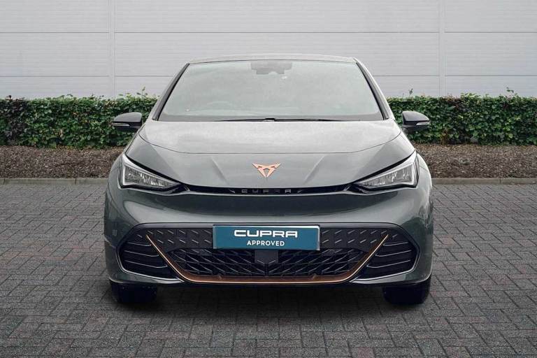 Available from 15/05/2026. CUPRA Born Electric Hatchback 240kW e-Boost VZ 79kWh 5dr Auto in Dark Forest. Specification Includes Exterior Features,Premium Metallic Paint,Paint - Special,Premium Metallic - Dark Forest,Trim - Cloth,Microsuede - Enceladus Grey,Exterior Features,Acoustic Windshield,Dark Tinted Rear Windows,Heat Insulated Glass,Rear Wiper,Variable Intermittent Wiper,Windshield Wiper With Light/Rain Sensor,Shock Absorption In Front,Sports Rear Shock Absorption,Exterior Vz Lettering,Rear Side Wing Doors,Transport Protection Film,Full Led Headlights,Led 3rd Brake Light,Led Daytime Running Lights,Led Rear Lights,Welcome Home Function And Adverse Weather Function,Audio / Communications,Bluetooth,Wireless Full Link Smartphone Integration,2x Usb Sockets In Front,2x Usb Sockets In Rear- Charge Only,Dab (digital Audio Broadcasting) And Am/Fm Radio,Sennheiser Premium Audio,Safety,Dynamic Steering,Forward Collision Warning With Automatic Braking,Lane Assist,Auto Dimming Rear View Mirror,Electric Adjustable/Heated/Folding Door Mirrors,Grey Exterior Mirrors,3 Point Seatbelts On All Rear Seats,Attention And Drowsiness Assist,Driver And Front Passenger Airbags With Front Passenger Airbag Deactivation- Side Airbag In Front With Curtain Airbag And Front Interaction Airbag,Extended Safety System With Proactive Passenger Protection System,Tyre Pressure Monitoring System,Visual And Acoustic Seat Belt Reminder,Driver Convenience,Tailgate,Miscellaneous,5.3in Digital Cockpit With 12.9in Central Display Infotainment System,Augmented Reality Head Up Display,E-Call Service,Emergency Steering Support With Turn Assist,Right Hand Drive Vehicle,Voice Assistant,Interior Features,Dual Zone Climatronic Air Conditioning,Electric Auxiliary Air Heater,Aluminium Pedals,Cupra Emblem On Steering Wheel,Heated Leather Wrapped Multi Function Steering Wheel With Satellite Buttons,Microsuede Upholstery,Tool Kit With Tirefit,Interior Smart Light,Gear Ratio 7915,Sunvisors With Illuminated Mirror,Packs,Dynamic Pack - Born,Safety And Ncap Pack - Born,Tech M Pack Without Car 2x Function - Born,Trim,3 Seat Bench In 2nd Row,Cup Bucket Seats With Power Seat Adjustment- Lumbar Support And Memory Feature,Heated Front Seats,Integrated Front Head Restraints,Isofix Points In Outer Rear Seats With Top Tether Anchorage Points,Rear Headrests,Single Front Passenger Seat,Unsplit Rear Seat Bench- Split Folding Backrest- With Centre Armrest,Security,Anti Theft Alarm System With Interior Monitoring In Cab-