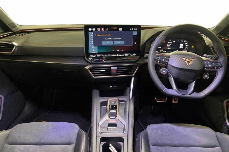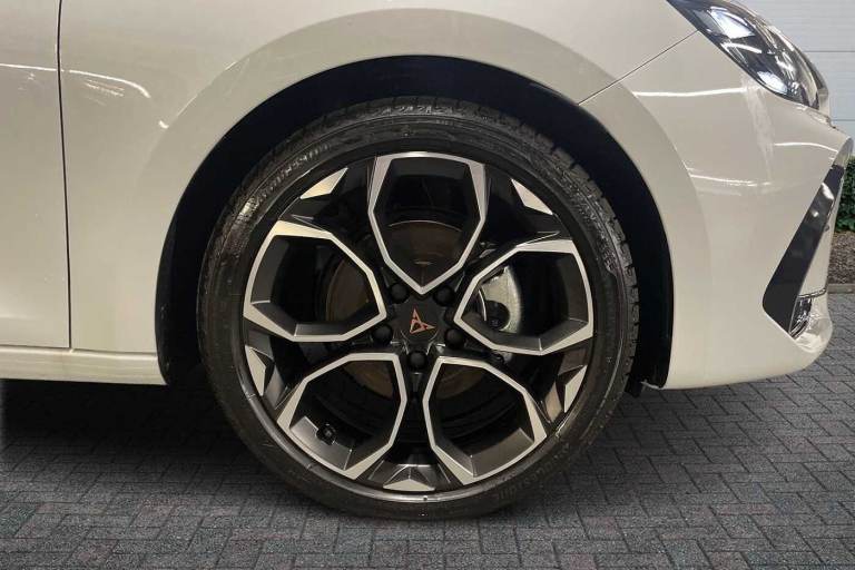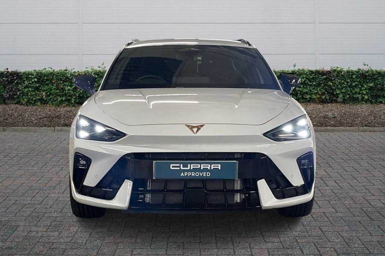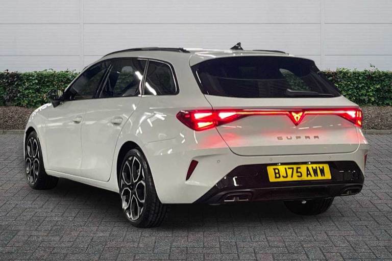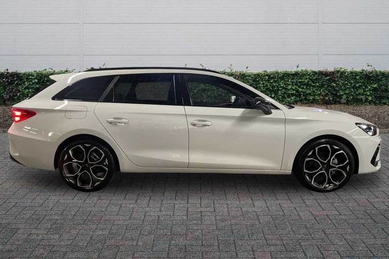 Available from 18/05/2026. CUPRA Leon Estate 1.5 eTSI 150 V2 5dr DSG in Glacial White. Specification Includes Exterior Features,Metallic Paint,Audio / Communications,7 Speakers,Wheels,Breakdown Kit,Paint - Metallic,Metallic - Glacial White,Trim - Part Leather,Dinamica Cloth - Soul Black With Copper Stitching And Embroidered Cupra Logo In Headrest + Bucket Seats,Exterior Features,Dark Tinted Rear Windows,Electric Front/Rear Windows,Rain Sensing Wipers,Rear Wash/Wipe,Dynamic Chassis Control,Body Colour Door Handles,Body Coloured Bumpers,Cupra Sports Bumpers,Gloss Black Roof Rails,Rear Diffuser With Black Simulated Exhaust Pipes,Rear Side Wing Doors,High Beam Assist,Led Front Fog Lamps With Cornering Function,Led Headlights With Dynamic Turn Signals- Tail Lights- Rear Fog Lights With Rear Coast To Coast Lighting,Led Rear Fog Lamp,Separate Daytime Running Light With Automatic Headlight Control And Coming Home Feature,Third Brake Light,Welcome Light With Logo Projector In Door Mirrors,Safety,Abs,Brake Control System - Esc And Brake Booster,Cupra Black Brake Calipers,Disc Brakes In Front,Electronic Parking Brake,Hill Hold Control,Rear Disc Brakes,Adaptive Cruise Control With Follow-To-Stop And Speed Limiter,Cupra Drive Profile Selection With (comfort/Performance/Individual)- Throttle Response And Gearshift Mode,Driver Alert System,Dynamic Road Sign Display,Front And Rear Parking Sensors,Front Assist With Forward Collision Warning Braking Reaction To Vehicles- Pedestrians And Cyclists,Front Cross Traffic Assist,Lane Assist,Pas,Rear View Camera,Auto Dimming Rear View Mirror,Electrically Adjustable- Heated And Folding Door Mirrors,3 Point Seatbelts On All Rear Seats,Child Proof Door Locks,Driver And Front Passenger Airbags With Front Passenger Airbag De-Activation- Front Side And Curtain Airbags,Seat Belt Reminder For Front And Rear Seats,Tiredness Recognition System,Tyre Pressure Monitoring System,Audio / Communications,E-Call,Full Link Smartphone Integration With Mirror Link- Wireless Apple Carplay And Wired Google Android Auto,Auxiliary Input Socket,Driver Convenience,Lockable Tailgate,Start/Stop System With Regenerative Braking,Virtual Pedal With Electric Tailgate,Wireless Phone Charger,Miscellaneous,Digital Cockpit,Rpm- Trip Computer- Outside Temp Gauge- Instrument Light Brightness- Low Fuel Warning Light- Lights On Reminder- Gearshift Indicator,Service Interval Indicator,Trim,Chrome And Copper Interior Detailing,3 Seat Bench In 2nd Row,5 Headrests,60/40
