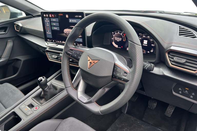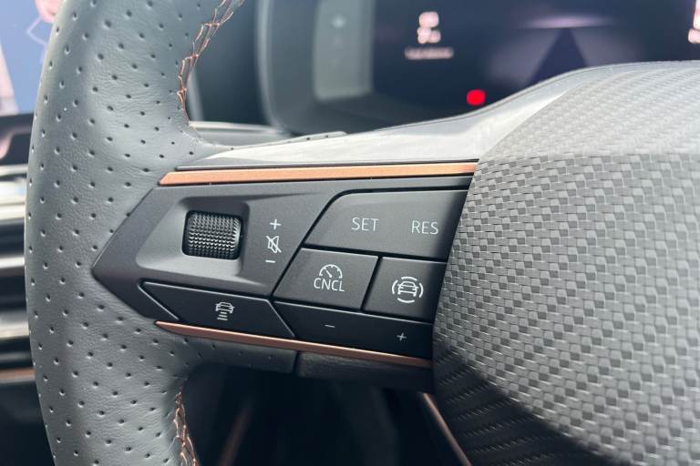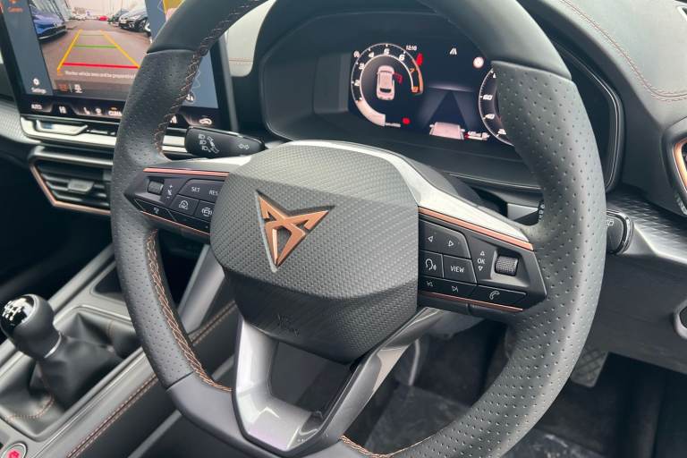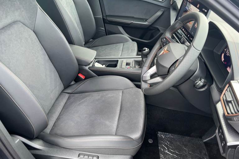 ..Dinamica Bucket Seats - Part PVC with Stitiching and Embroided CUPRA Logo in Headrest - Black, Cupra Approved Sale, Remainder of CUPRA 5 Year Manufacturers Warranty, No Administration Fees Applicable, Massive Savings Against MRRP !!!, Complimentary 5 Day Drive Away Insurance, Delivery Miles, Pre Registered Sale, Over 7000 Saving Against MRRP !!!, 12V Power Supply in Centre Console, 19in Alloy Wheels - Polar - Machined Sport - Black and Silver, ABS - Anti-Lock Braking System, Adaptive Cruise Control with Follow-to-Stop and Speed Limiter, Anti-Theft Alarm System - Interior Monitoring - Backup Horn and Towing Protection, Auto Dimming Rear View Mirror, Brake Control System - ESC and Brake Booster, Breakdown Kit, CUPRA Black Brake Calipers, CUPRA Connect - Safety - Service - Remote and Online, CUPRA Drive Profile, CUPRA Dynamic and Comfort Pack, CUPRA Flat Bottomed - Leather Perforated Steering Wheel, CUPRA Sports Bumpers, Chrome and Copper Detailing, Dark Tinted Rear Windows, Digital Cockpit, Door Mirrors Electrically Adjustable - Folding and Heated, Driver and Front Passenger Airbags with Front Passenger Airbag Deactivation - Front Side and Curtain Airbag, Dynamic Road Sign Display, Electric Front and Rear Windows, Electrically Adjustable Driver Seat - Lumbar Support with Memory Function and Manual Adjustment for Passenger, Electronic Parking Brake, Extended Warranty - 5 Years or 90000 Miles, Five Headrests, Folding Boot Cover, Front Assist - Forward Collision Warning Braking Reaction to Vehicles - Pedestrians and Cyclists, Front Centre Armrest, Front and Rear Reading Lights - Four, Front and Rear Seat Belt Reminders, Full Link Smartphone Integration, Headlining - Black, Heated Front Seats, High Beam Assist, ISOFIX Points in Outer Rear Seats with Top Tether Anchorage Points, Illuminated Front Door Sill, Illuminated Sunvisor with Mirror, Interior Ambient Lighting, Interior Wraparound Lighting, KESSY Advanced - Keyless Start - Keyless Entry, LED Front Fog Lamps with Cornering Function, LED Headlight, LED Rear Fog Lamps, Lane Assist, Media System Plus with Navigation, Parking Sensors - Front and Rear, Power Steering, Rain Sensing Wipers, Rear Bench Seats with 60-40 Split and Armrest, Rear View Camera, Separate Daytime Running Lights with Automatic Headlight Control and Coming Home Feature, Seven Speakers, Storage Pockets on Rear of Front Seats, Three Zone Climate Control, Tiredness Recognition System, Tool Kit, Tyre Pressure Monitoring System, USB Type C x4 -