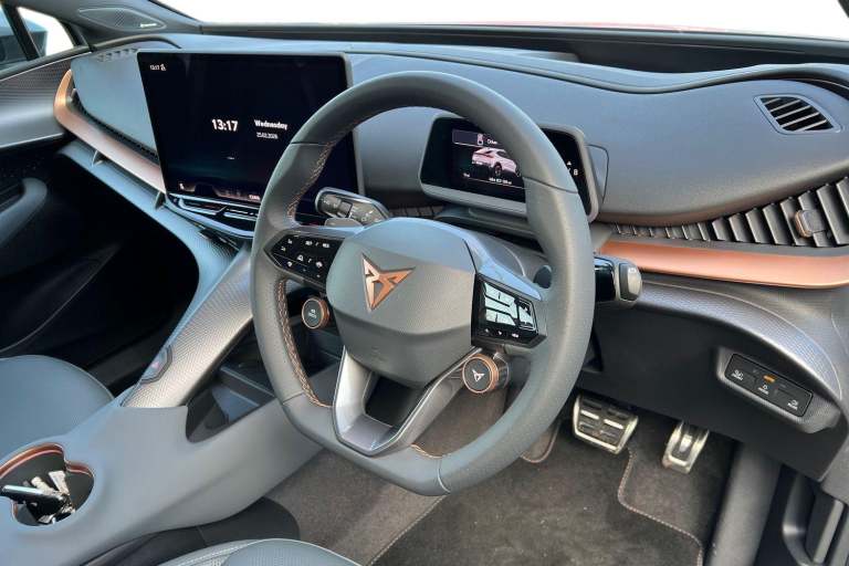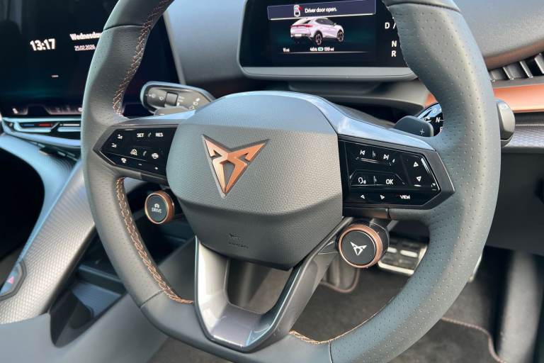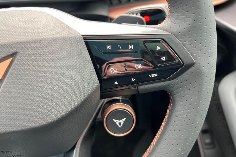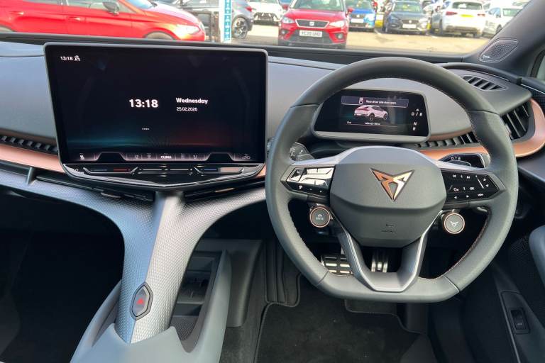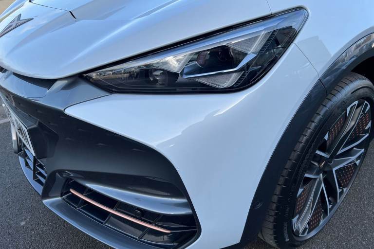 ..Winter Pack, Hero Leather Cup Bucket Seats - Enceladus Grey, Cupra Approved Sale, Current Cupra Demonstrator, 145 Point Cupra Approved Mechanical/Safety Check, Huge Saving against Manufacturers List Price 62810 !!!, Remainder of Cupra 5 Year Manufacturers Warranty, Metallic paint, Special metallic paint, Special Metallic - White silver, Leather - Hero enceladus grey, Dark tinted windows, Front and rear electric windows, Heated rear window, Rain and light sensors, Rear wiper, Dynamic chassis control Sport, Front and rear stabilizer bars, Shock absorption in front, Sports rear shock absorption, Fixed panoramic sunroof, Illuminated door handles, Rear side wing doors, Transport protection film, Front and rear illuminated CUPRA logos, Front light assist, LED daytime running lights, LED third brake light, Matrix LED headlights with Matrix Beam and signature, Rear 3D lights with ceremony, Welcome light with logo projector in door mirrors, ABS, ESC (Electronic Stability Control), Drive Profile Selection (Range, Comfort, Performance, CUPRA, Individual), Dynamic road sign display, Dynamic steering, Exit warning and assist, Forward collision warning, Intelligent park assist, Intelligent voice control powered by ChatGPT, Lane assist, Level 2 autonomous driving, Level 2 autonomous parking, PAS, Predictive adaptive cruise control with speed limiter, Rear traffic alert, Rear view camera, Remote park assist, Side assist, Top view camera, Traffic sign recognition, Trained park assist, Vehicle control in a medical emergency, Auto dimming interior rear view mirror, Electric adjustable/heated/folding door mirrors, 3 point seatbelts in front with pretensioner/lap belt pretensioner and height adjustment, Active bonnet, Attention and drowsiness assist, Child locks on rear doors, Driver and front passenger airbags with front passenger airbag deactivation, side airbag in front with curtain airbag and front interaction airbag, Extended safety system (proactive passenger protection system, basic, front and rear), Pre crash system, Rollover assist, Tyre pressure monitoring system, Visual and acoustic seat belt reminder, Front + rear carpet mats, 3 zone Climatronic air conditioning, Aluminium pedals, Centre console with armrest, Double floor in boot, Heated leather wrapped multi function steering wheel with satellite buttons, Leather upholstery, Rear armrest, Ambient lighting ''Immersive'', Illuminated door mouldings, Gear ratio 11, 347 and 7, 915, Sun visors with illuminated