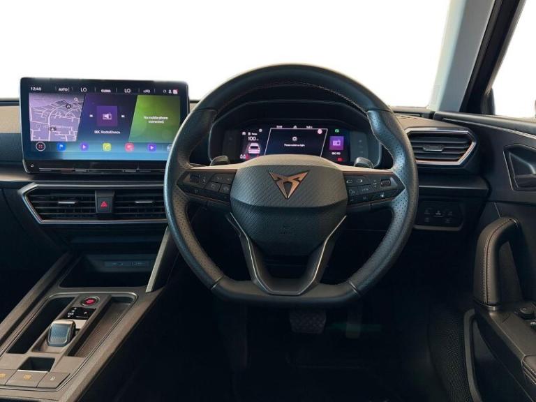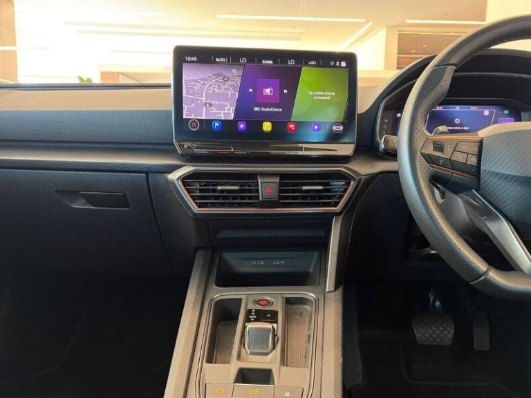 Here at Lloyd Jaguar Land Rover York, we are pleased to present this stylish Cupra Leon Hatchback finished in Magnetic Tech Grey, complemented by a Black Leather Sports Interior with contrast stitching. First registered in May 2024, this vehicle has covered 18,495 miles and remains in excellent condition throughout. This Cupra will be fully inspected and undergo its first scheduled service prior to sale, ensuring it is prepared to the highest standard for its next owner. As part of the Lloyd Select Programme, it offers complete peace of mind, benefiting from the balance of the manufacturer s warranty along with 12 months Europe-wide roadside assistance. Every vehicle undergoes a thorough inspection and preparation process to ensure the highest standards of safety, reliability and performance, with a warranty that is valid at any UK VAT-registered garage, including main dealers, and is fully transferable and supported across Europe. Powered by a responsive 1.5 eTSI engine paired with a smooth DSG automatic gearbox, this Leon delivers an ideal balance of performance and efficiency, producing around 150PS for confident, effortless acceleration while achieving an impressive 45 50 mpg. This translates to low day-to-day running costs and an excellent commute range of approximately 450 550 miles per tank, making it perfectly suited to both daily driving and longer motorway journeys with fewer fuel stops. Inside, the car is packed with intuitive, driver-focused technology designed to enhance every journey. The fully digital cockpit replaces traditional dials with a sharp, customisable display, keeping key information clearly in view. Apple CarPlay and Android Auto provide seamless smartphone integration, allowing easy access to calls, music and navigation, while wireless charging keeps your device powered without the need for cables. Adaptive Cruise Control makes longer drives more relaxing by automatically maintaining a safe distance from the vehicle ahead, adjusting speed smoothly in traffic. A rear view camera alongside front and rear parking sensors makes parking effortless, offering clear visuals and guidance in tighter spaces. Climate control ensures the cabin remains at your ideal temperature all year round, while the heated steering wheel adds a welcome touch of comfort on colder mornings. LED headlights not only enhance the Leon s sharp, modern styling but also deliver brighter, more efficient lighting for improved visibility. With its sporty design,