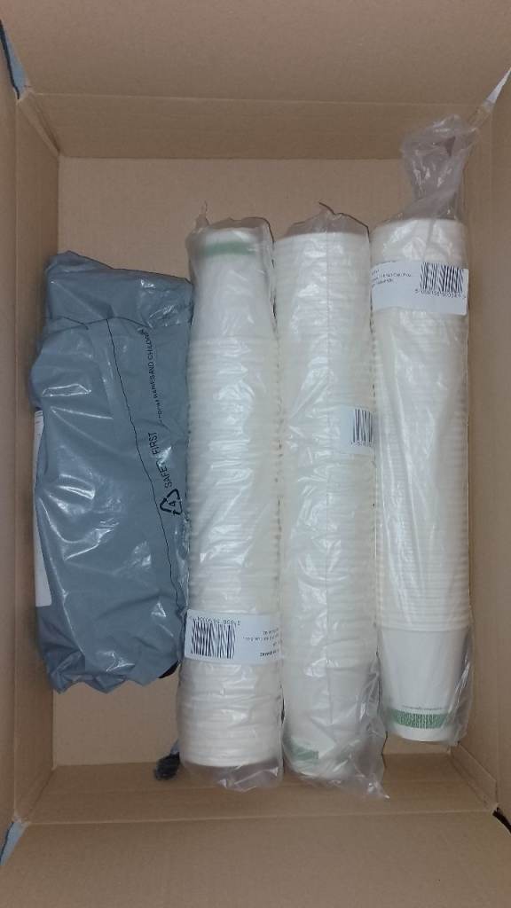 150 vegware paper cups with cardboard sleeves