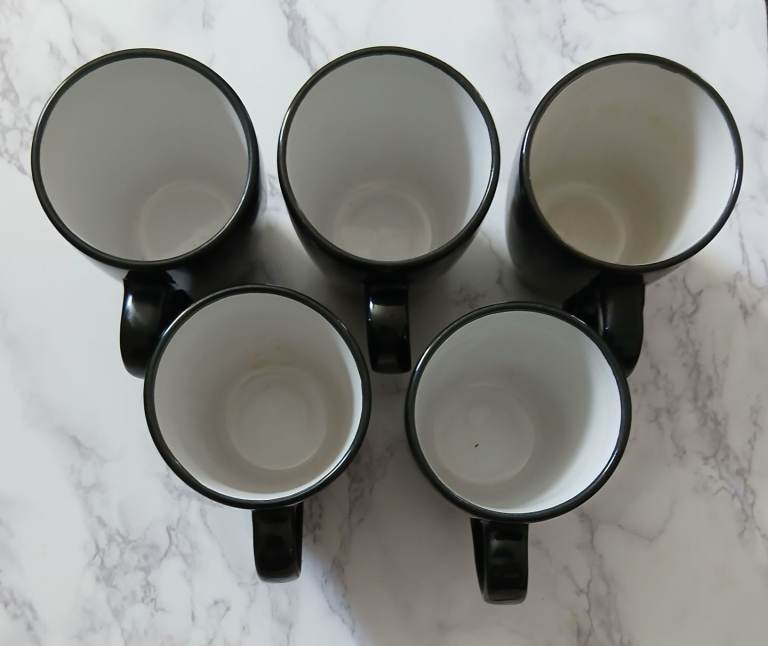 5 coffee or tea cups used but in very good condition colour black