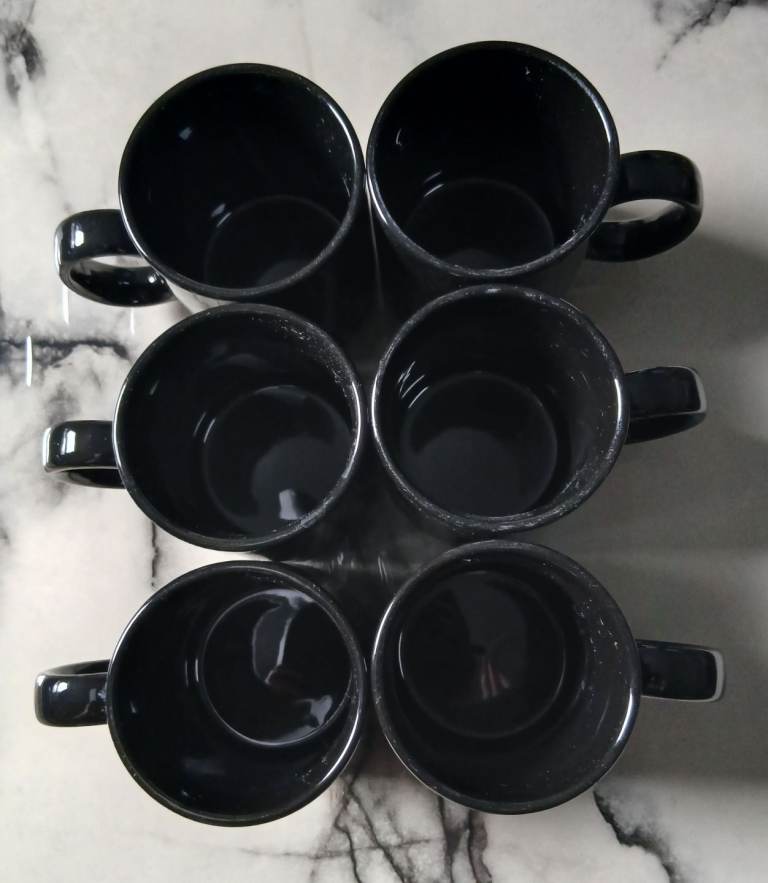 6 coffee and tea cups new without tags colour black