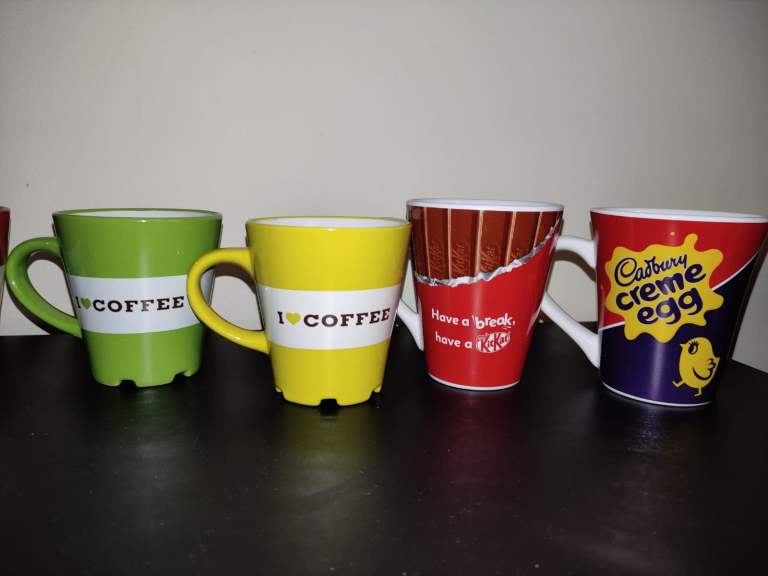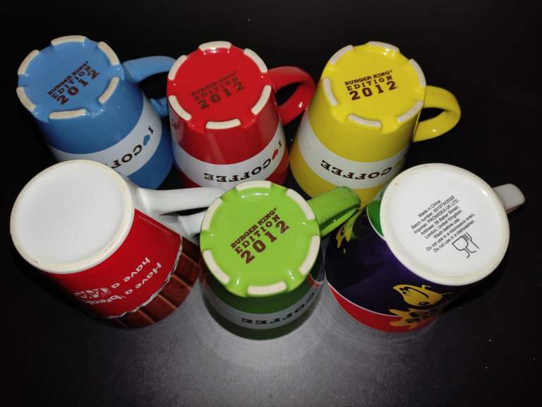 6 x mugs - Burger King 2012 Limited Edition Caffe mug, KitKat, Cadbury Crème egg