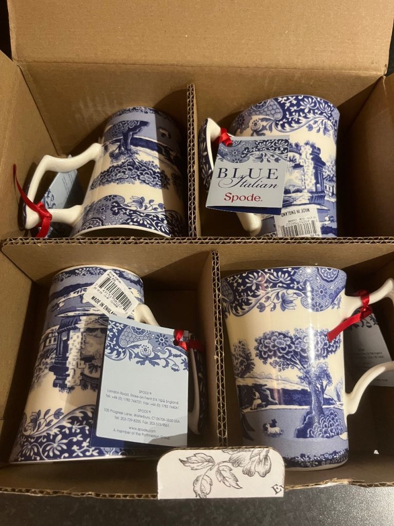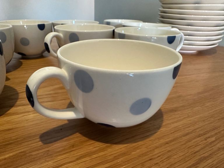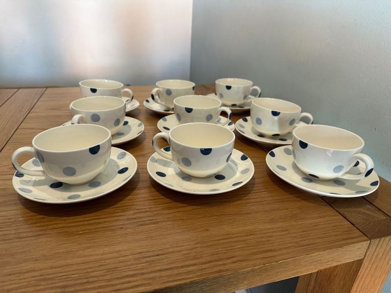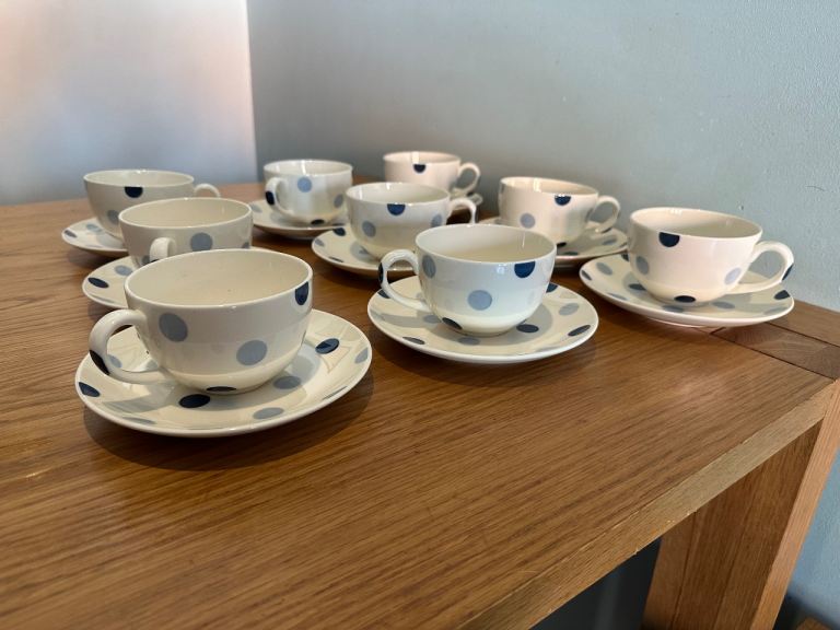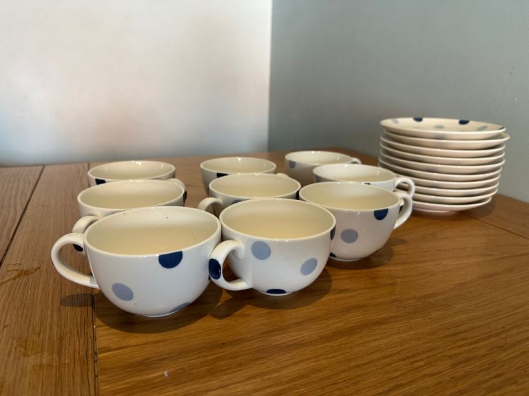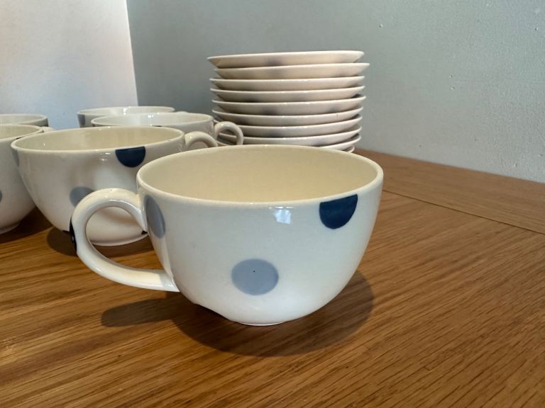 Unused and in perfect condition, 9 x blue spot cups and saucers from John Lewis. Unwanted gift looking for a good home!