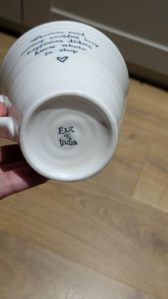 Posting for 2+ yearsEast Of India white porcelain mug