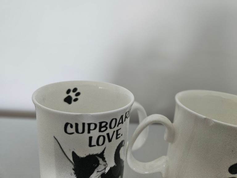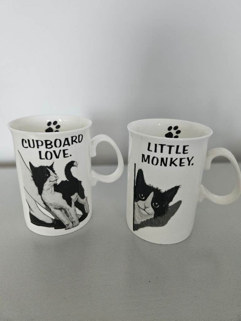Only ever kept in a display cabinet, but sadly Little Monkey and Cupboard Love mugs have a chip (hence the price). I have tried to show in the photos but not sure how well it has come out.