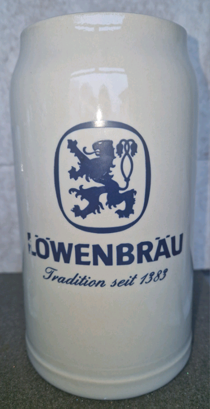2 German 1 litre ceramic beer mugs. The price is for both or individually 1 Dab beer £15 and 1 Lowenbrau £10. These can be posted at additional cost. Any questions please phone or text preferably.