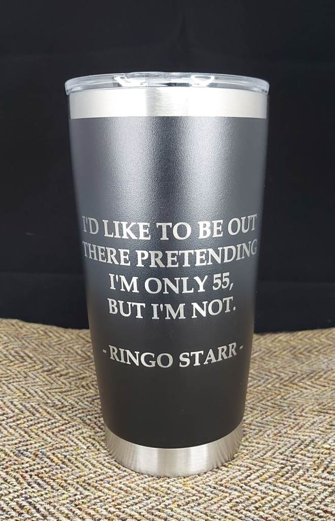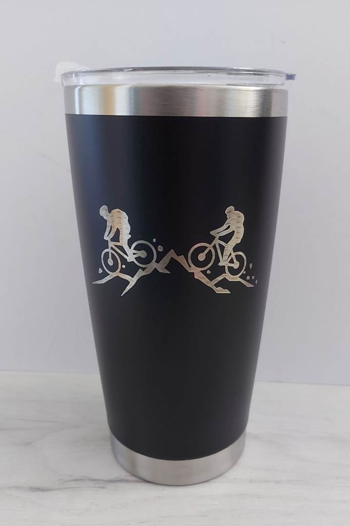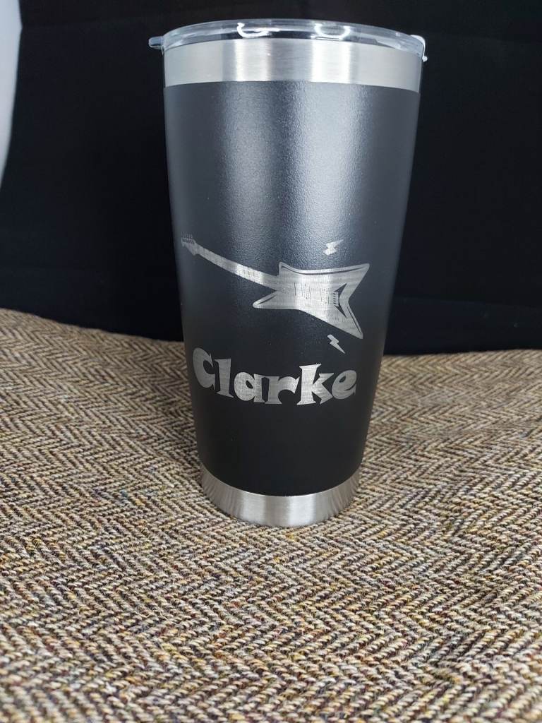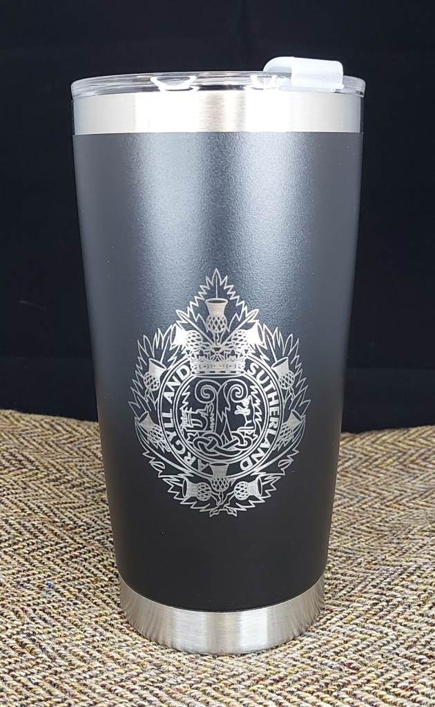 This good quality twin wall thermal mug with laser engraved design makes a great travel companion.