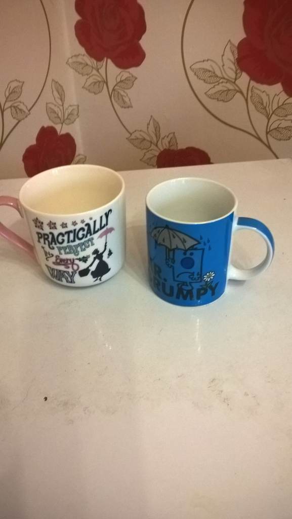 both items are brand new and in perfect condition and never been used and with no marks or cracks on the item mary poppind disney cup and mr men mr grumpy cup got no boxes thats all but other than that in perfect condition