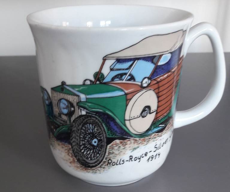 Mug Unused Rolls Royce Silver Ghost Cars, ceramic, Made in Poland, by Chodziez – post or collect