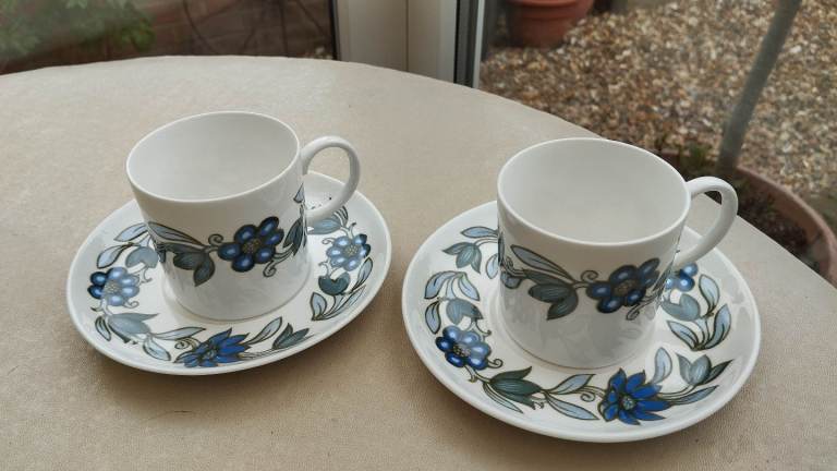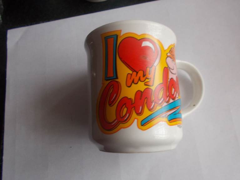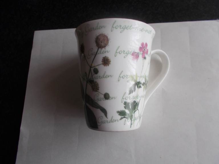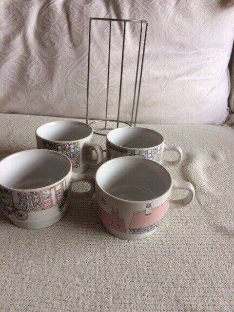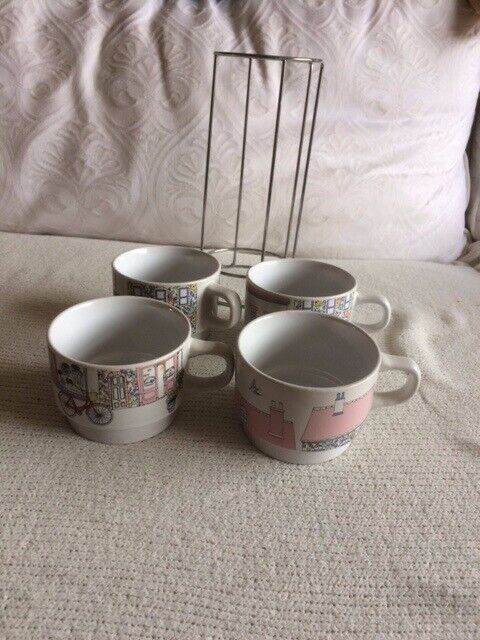 New Set of 4 Large Mugs in ChromeStand Design on Mugs Antique ,Veg, Coffee, Flower Shops all line up to show designs of 4 shops stoneware design Time for Tea with Ashley Thomas Designer for Debenhams