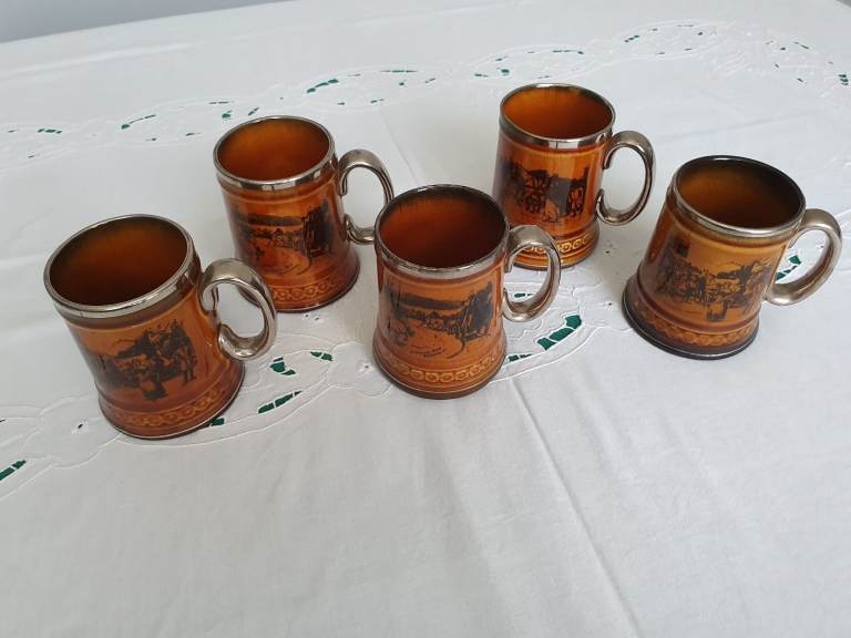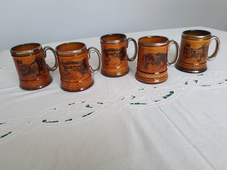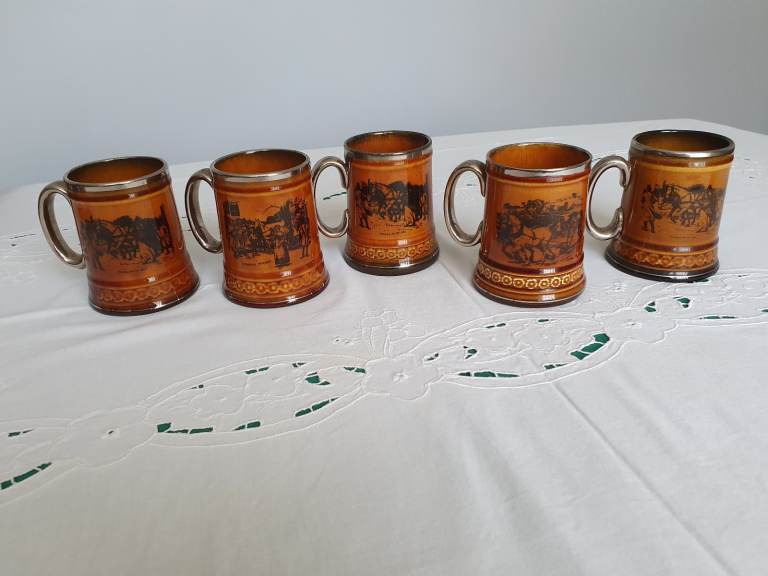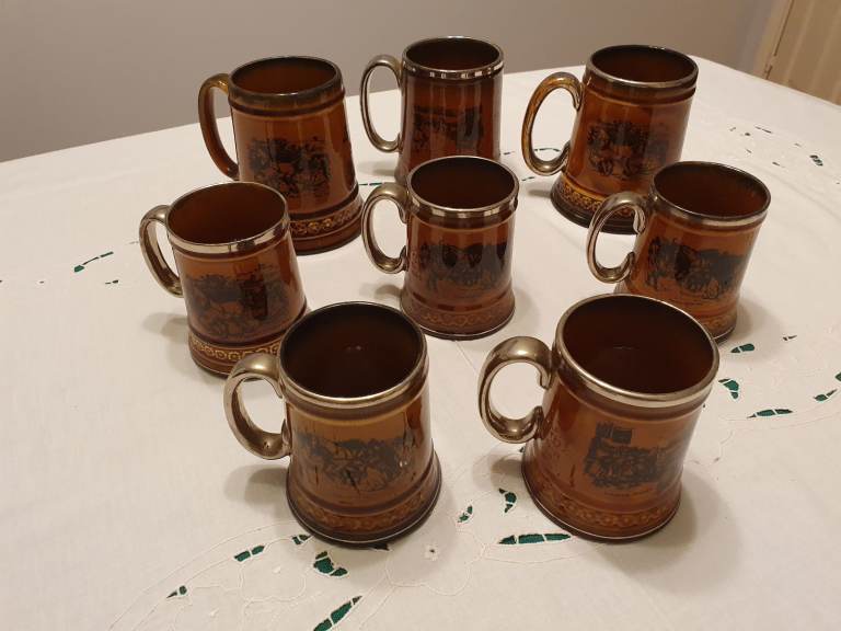 Set of 8 vintage tankards by Ridgway England - Coaching Days and Coaching Ways. 3 Large Tankards and 5 Medium Tankards.