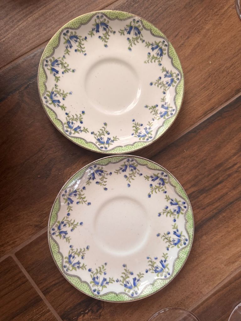 Antique teacup and saucers, unfortunately lost one teacup but there are still 2x saucers. Great for candle makers, tea lovers or as a decorative piece. No chips that I could see.