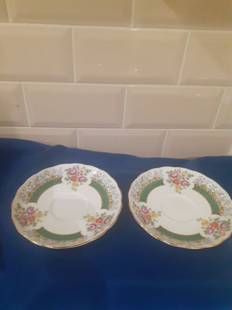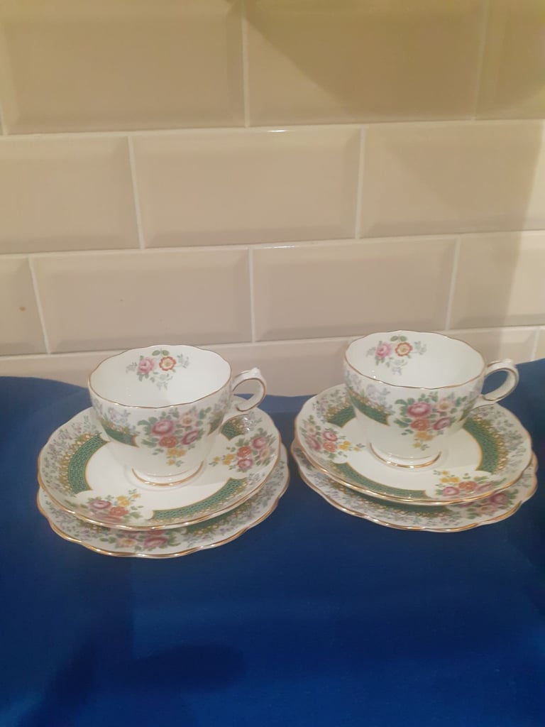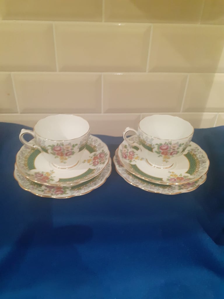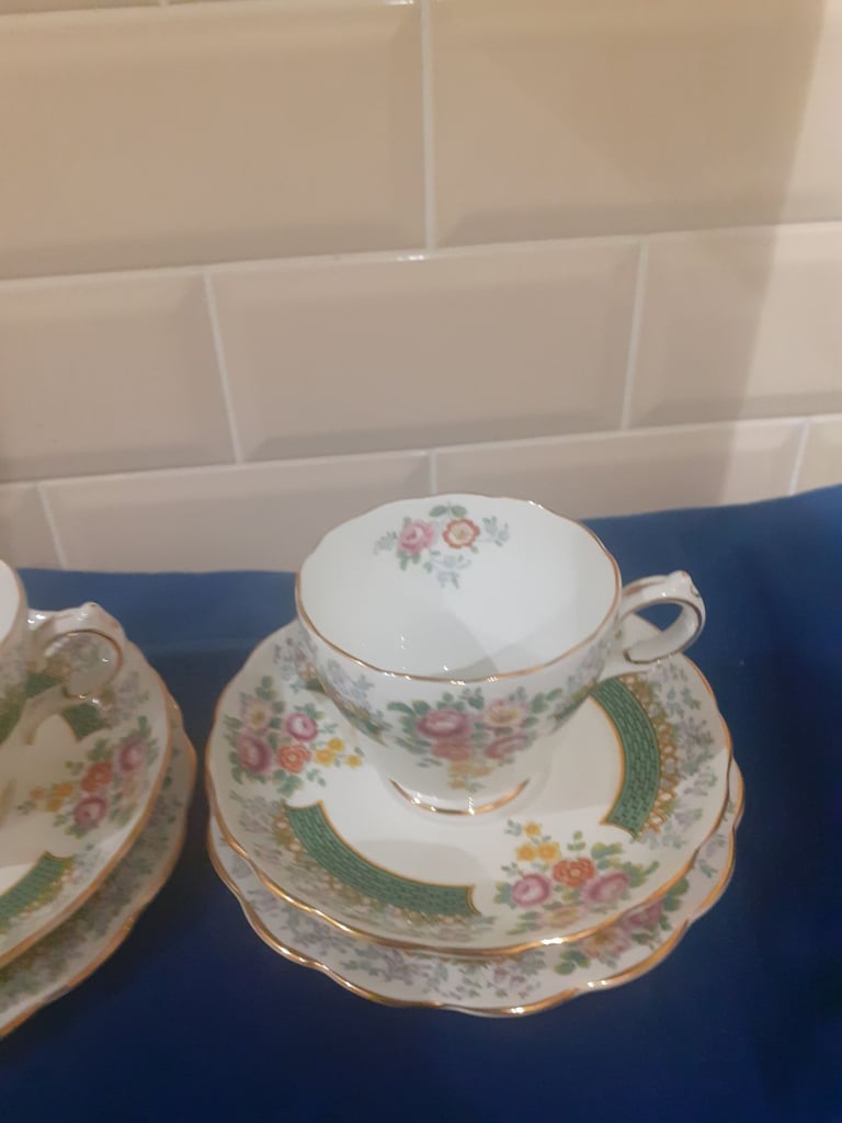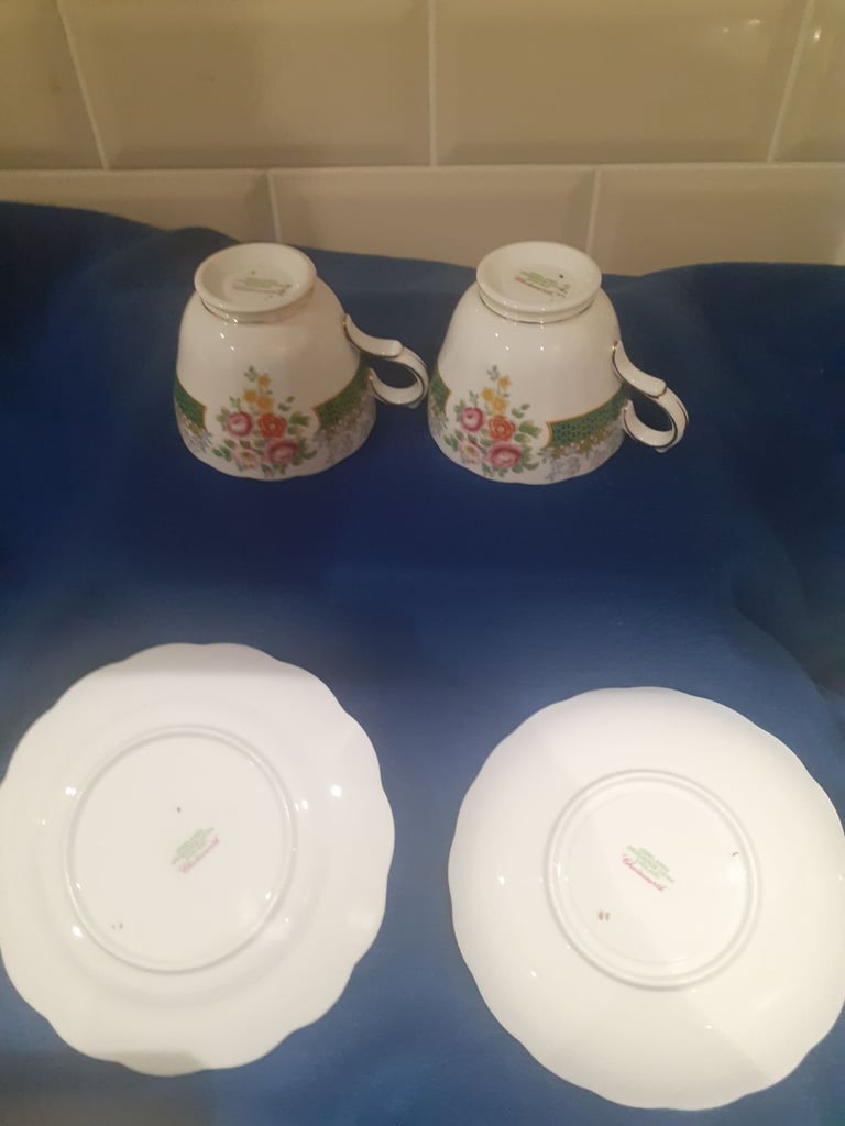 Vintage Copeland Grosvenor China Chatsworth 2 Cups, 2 Saucers, 2 Side Plates, Unused, Hallmark